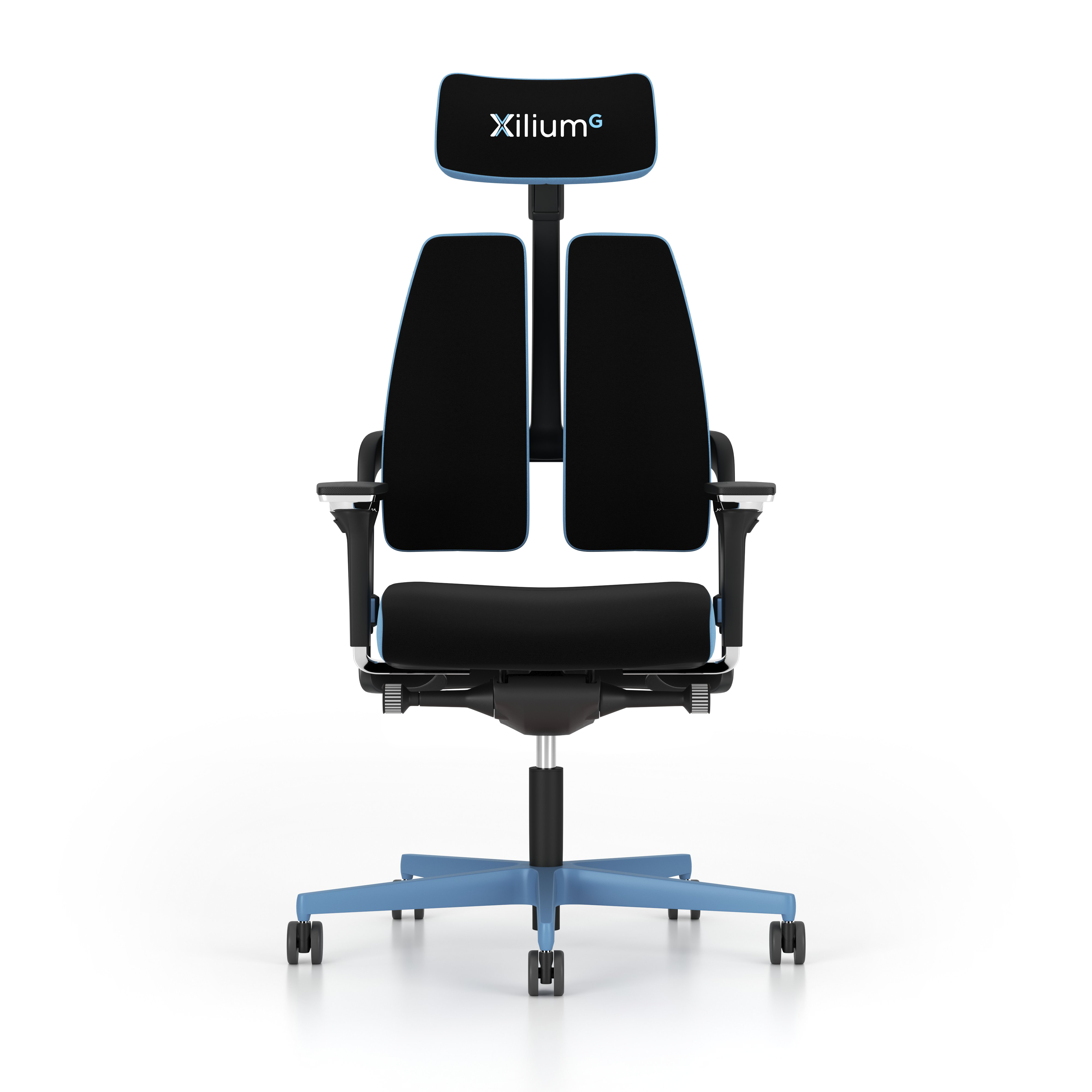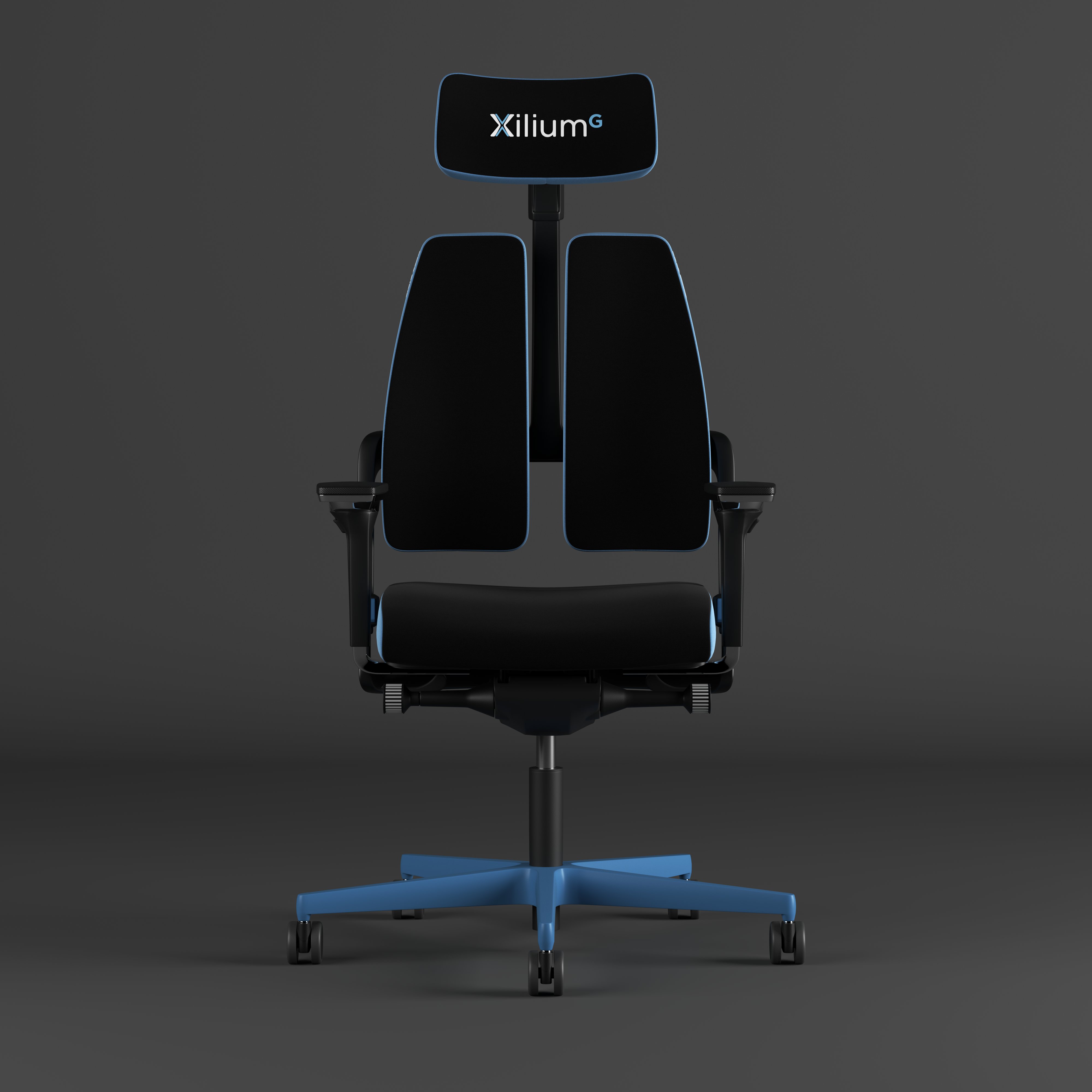 Entdecken Sie den Gaming Stuhl Xilium in elegantem Schwarz mit blauen Akzenten, der für höchsten Komfort und Langlebigkeit steht. Die präzise gefertigte Sitzfläche mit einer Breite von 45 cm und einer anpassbaren Sitztiefe von 37-49 cm bietet individuellen Sitzkomfort. Dank der variablen Sitzhöhe von 40-52 cm und der verstellbaren Armlehnen finden Sie immer die optimale Position.