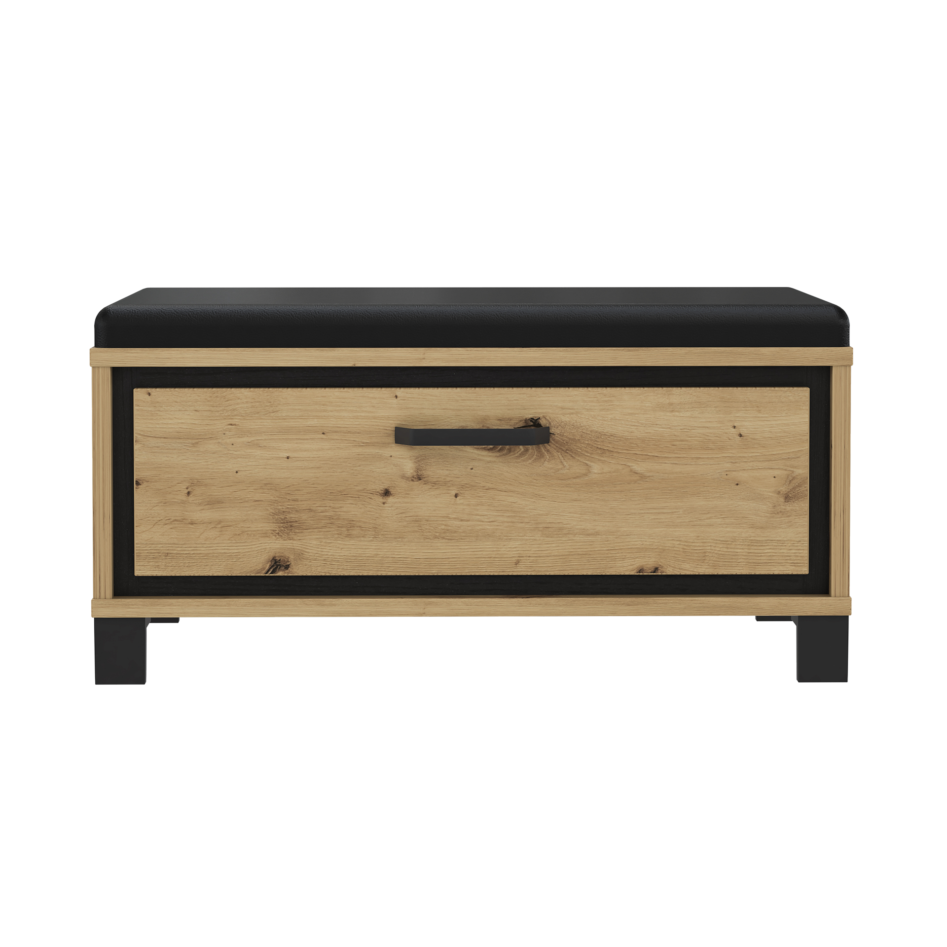 Entdecken Sie die vielseitige Garderobenbank Trinidad, die Funktionalität und Stil in einem harmonischen Design vereint. Diese elegante Bank präsentiert sich in einem attraktiven Eichefarben-Schwarz-Kontrast und ist der perfekte Blickfang für jeden Eingangsbereich. Gefertigt aus hochwertigen Materialien – Holz, Kunstleder und Metall – bietet sie nicht nur Stabilität, sondern auch eine ansprechende Optik. Die Sitzfläche aus strapazierfähigem Polyurethan sorgt für komfortables Sitzen bei einer angenehmen Sitzhöhe von 44,7 cm. Das Eiche Dekor verleiht der Bank eine warme, natürliche Ausstrahlung, die sich nahtlos in verschiedene Einrichtungsstile integrieren lässt.