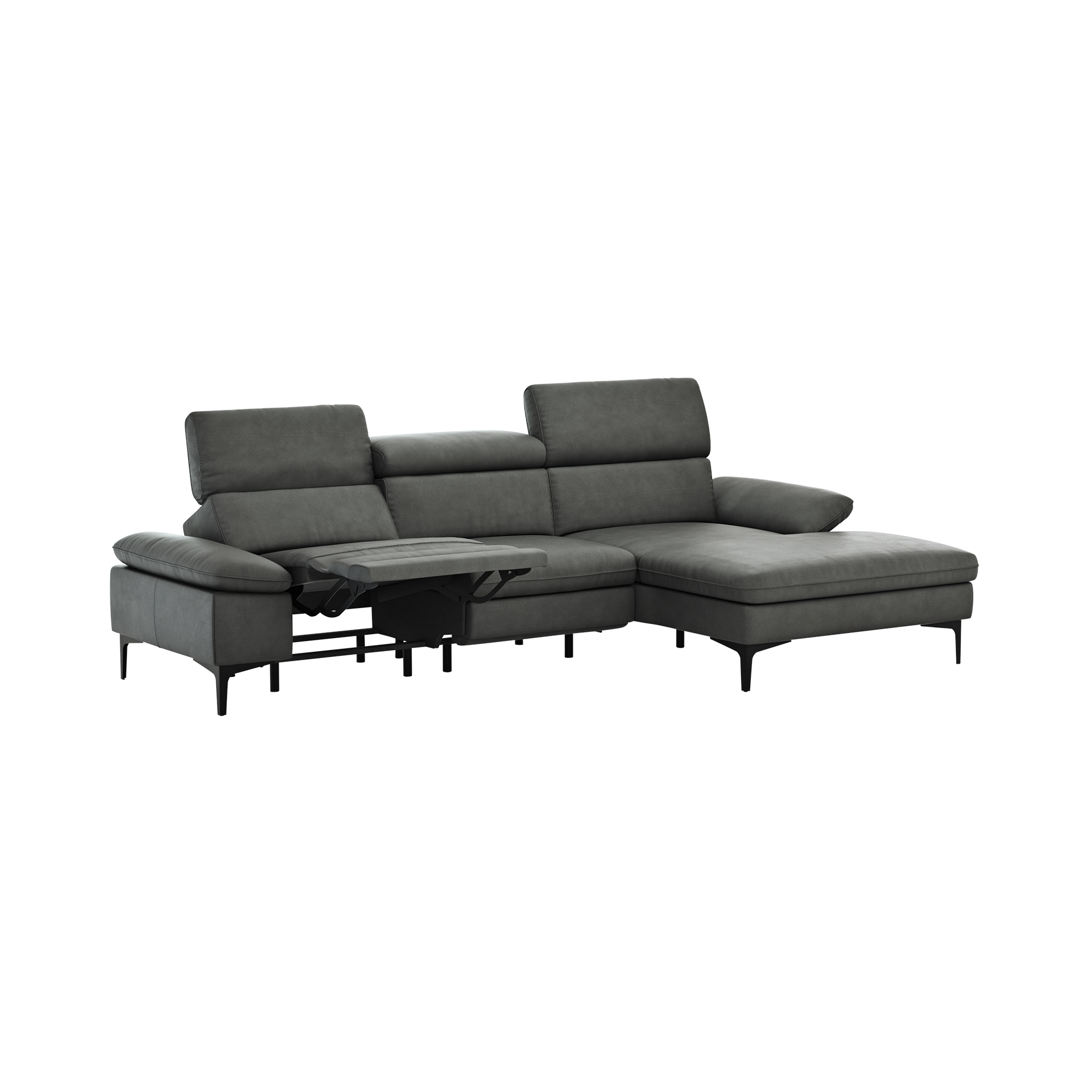 Das Global Wohnen Ecksofa Felipa in Retro Grey verkörpert zeitloses Design, höchsten Komfort und moderne Funktionalität. Mit einem hochwertigen Lederbezug strahlt es nicht nur Eleganz aus, sondern bietet auch eine angenehme Haptik. Die stabilen Metallfüße setzen einen zeitgemäßen Akzent und sorgen für zuverlässige Standfestigkeit. Die Polsterung aus Kaltschaum in Kombination mit der Wellenunterfederung gewährleistet einen erstklassigen Sitzkomfort, während die vielfältigen Produktvorteile dieses Ecksofas es zu einem Highlight in jedem Wohnraum machen. Die verstellbaren Armlehnen ermöglichen eine individuelle Anpassung, während die Kopfteilverstellung und die elektrische Sitztiefenverstellung eine personalisierte Entspannung gewährleisten. Die Rückenlehnenverstellung und ein echter Rücken tragen zusätzlich zur authentischen Gemütlichkeit bei. Das Ecksofa Felipa ist darauf ausgelegt, bis zu 120 kg zu tragen, und die längerer Schenkel auf der rechten Seite bieten flexible Gestaltungsmöglichkeiten für Ihren Raum. Die Farbgebung in Retro Grey verleiht dem Ecksofa einen zeitlosen Charme und eine stilvolle Note. Geliefert in einem handlichen Packstück und zerlegt, gestaltet sich die Montage unkompliziert. Mit Maßen von 83 cm Höhe, 303 cm Breite und 165 cm Länge wird das Global Wohnen Ecksofa Felipa zu einem markanten Mittelpunkt in Ihrem Wohnbereich. Gönnen Sie sich den Luxus von Premium-Design und optimaler Funktionalität und bestellen Sie dieses Ecksofa noch heute für eine einzigartige Wohnraumerfahrung.