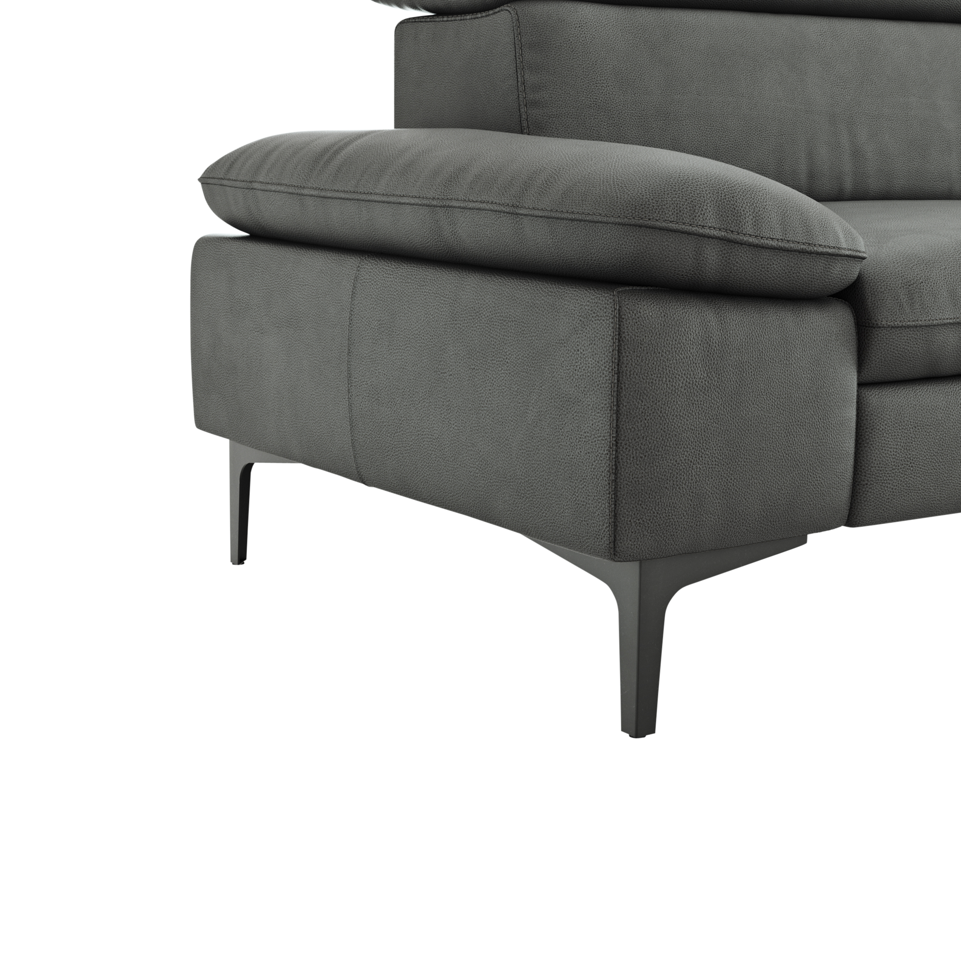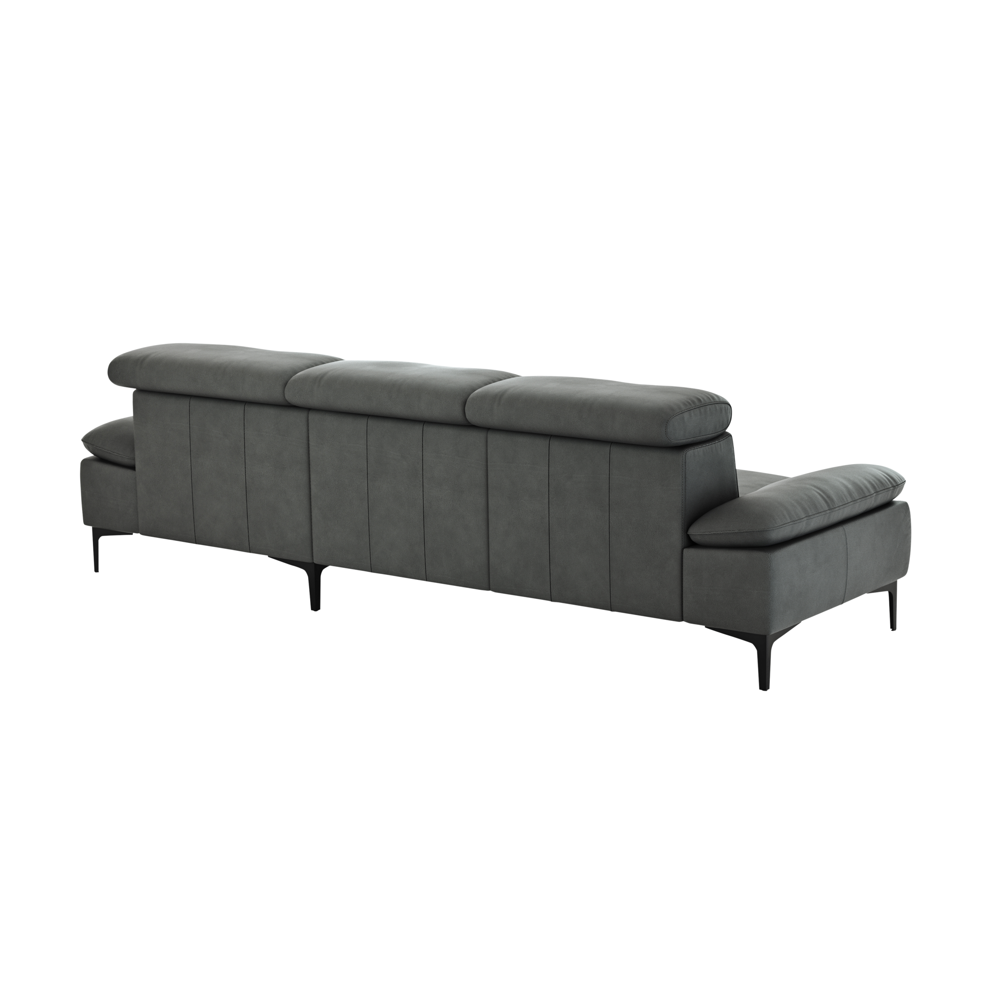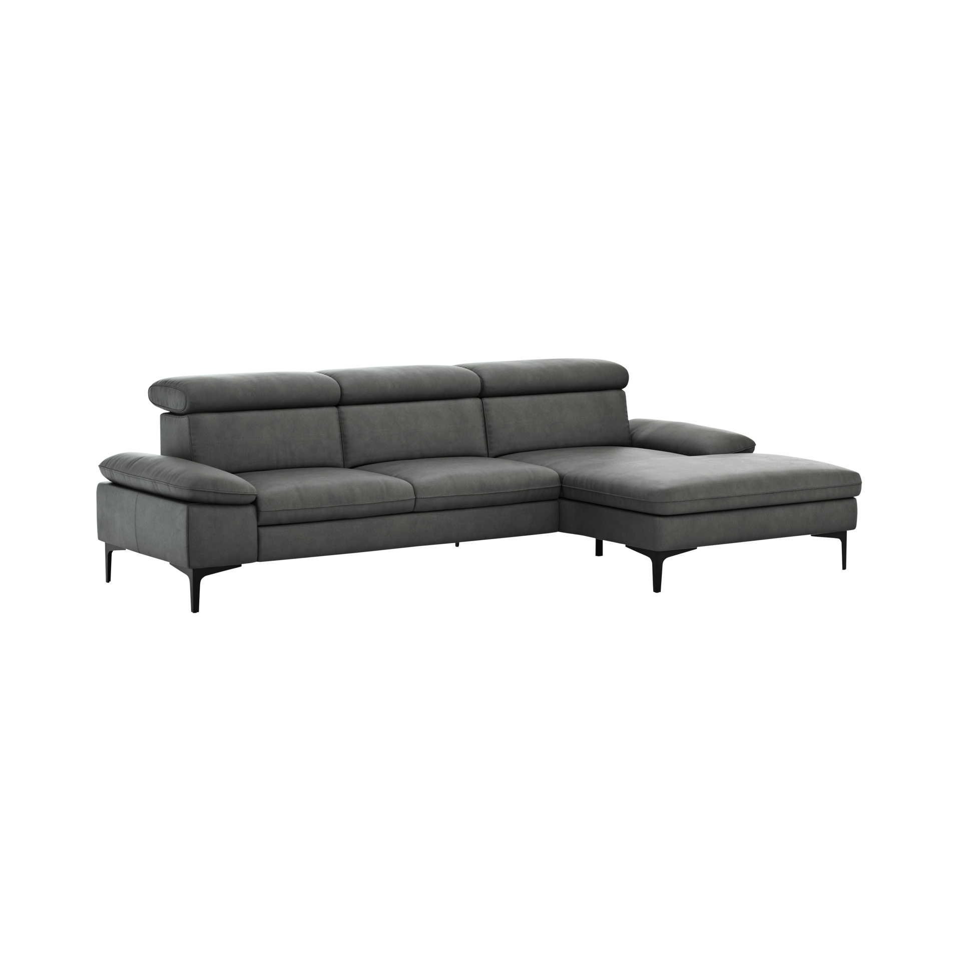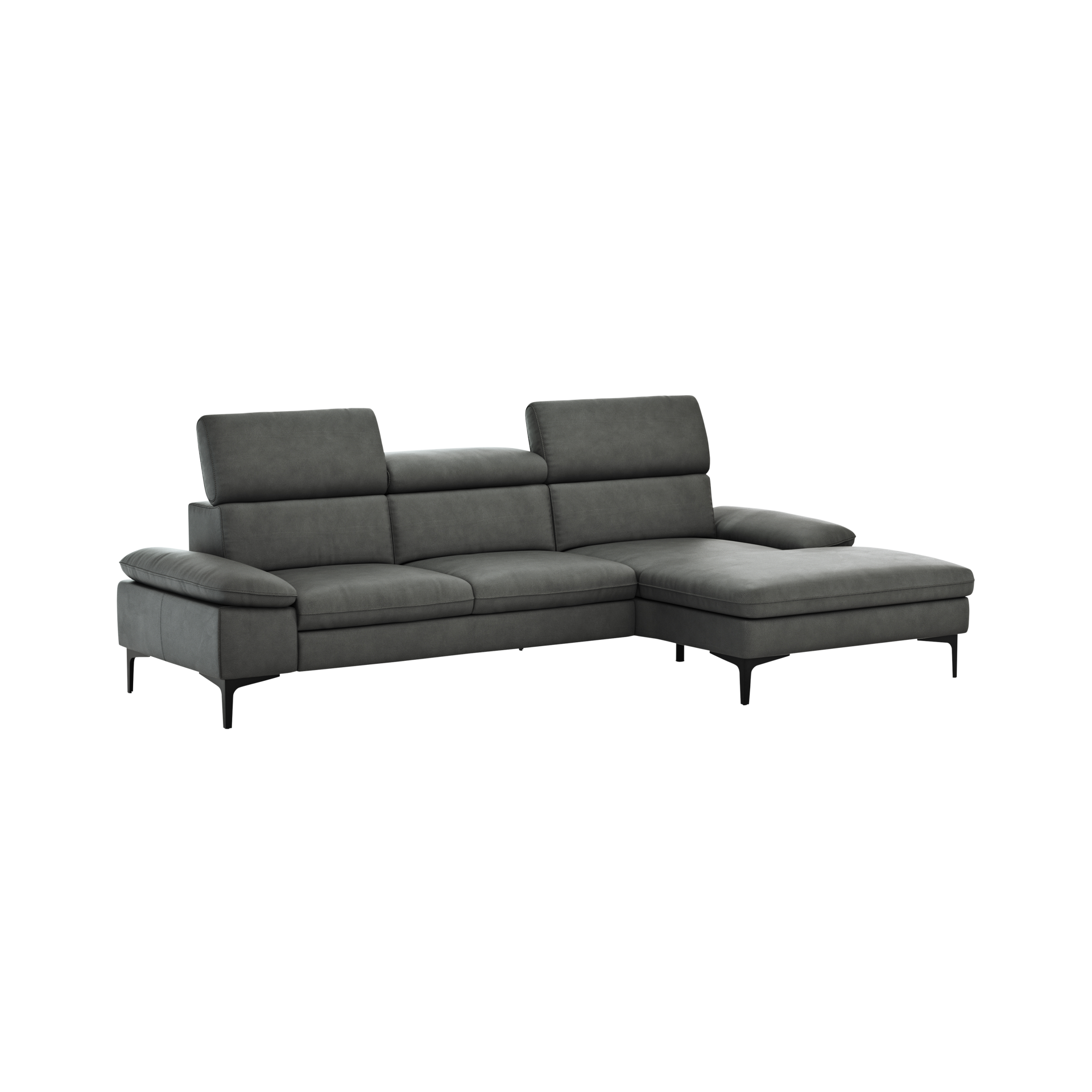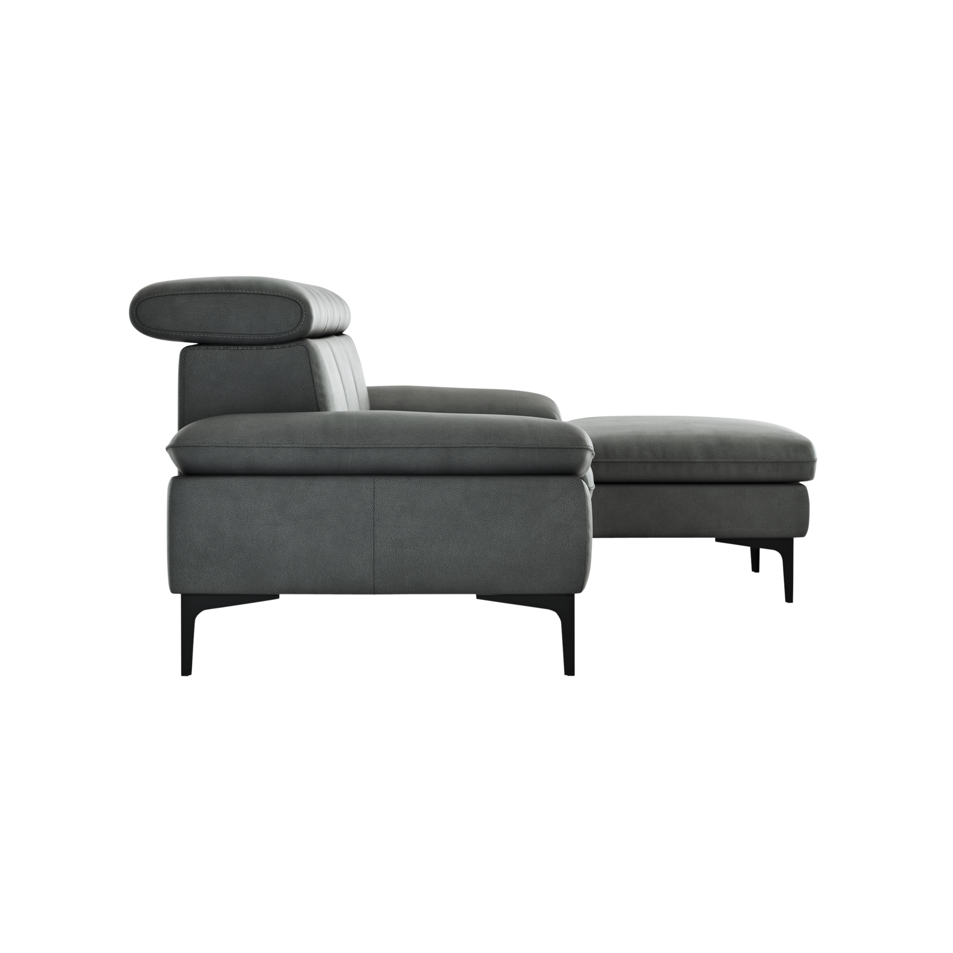 Das Ecksofa Felipa ist mit einem edlen Lederbezug ausgestattet, der nicht nur luxuriös wirkt, sondern auch pflegeleicht ist. Die verstellbaren Kopfteile bieten zusätzlichen Komfort, während der Rücken echt bezogen ist und somit auch frei im Raum platziert werden kann.