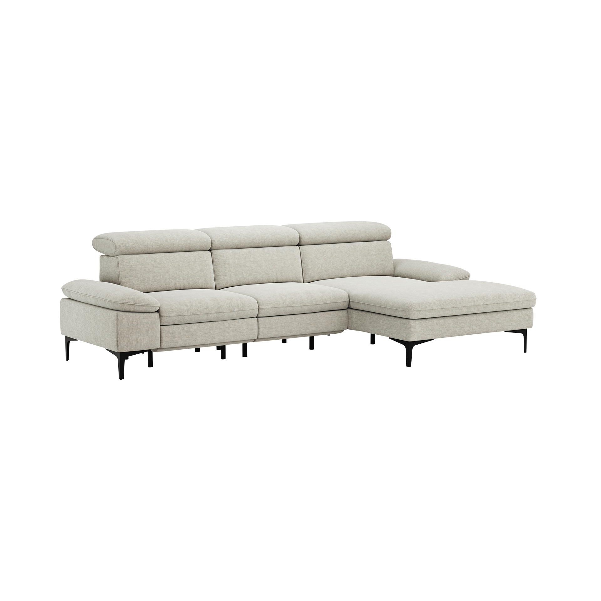 Der Bezug besteht aus strapazierfähigem Polyester, während die Füße aus robustem Metall gefertigt sind, was für Stabilität und Langlebigkeit sorgt. Ideal für stilbewusste Einrichtung und höchsten Sitzkomfort, verbindet das Ecksofa Felipa Funktionalität und modernes Design in Perfektion.