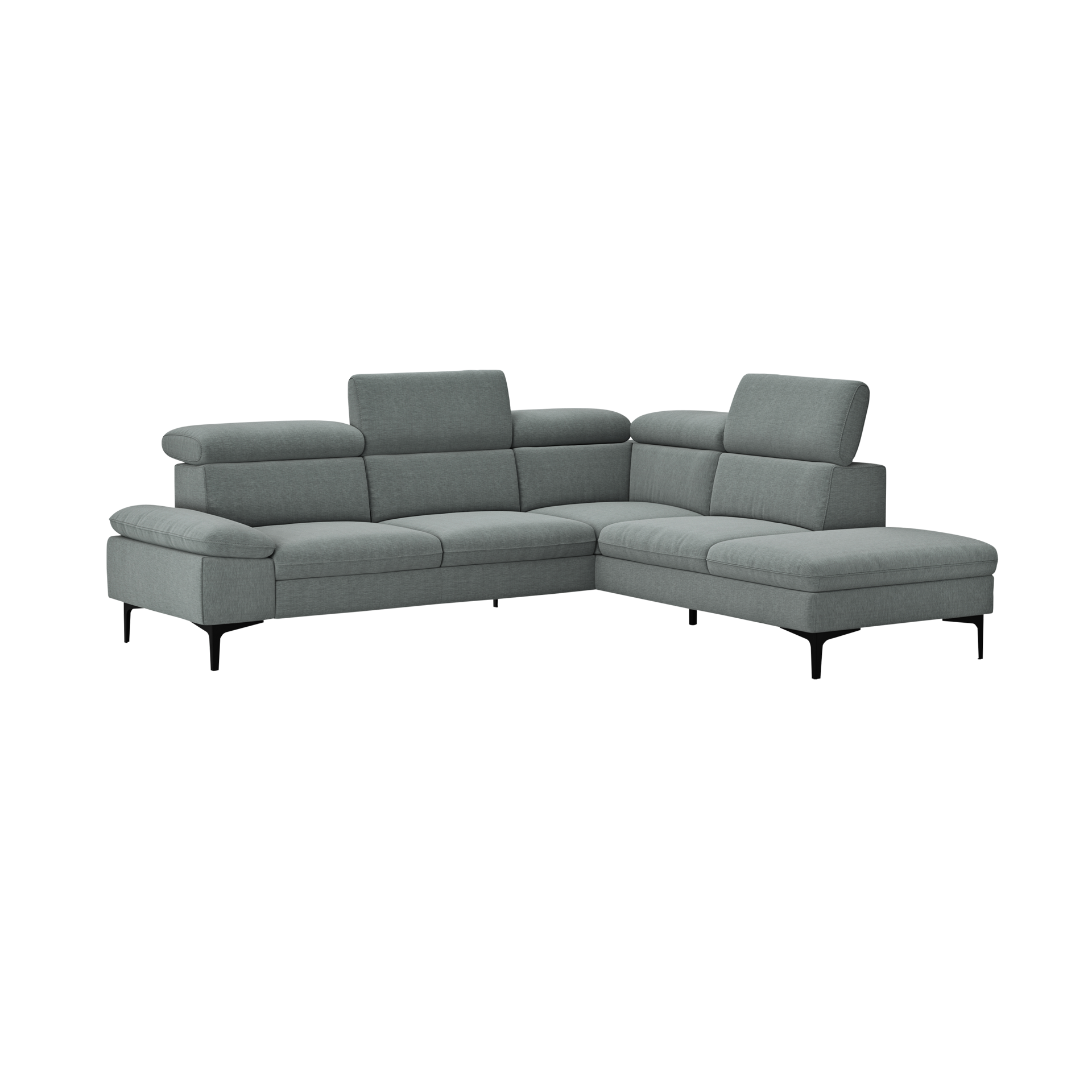 Das Ecksofa Felipa bietet zudem eine Kopfteilverstellung und einen echt bezogenen Rücken, was zusätzlichen Komfort und Flexibilität ermöglicht. Die Füße aus stabilem Eisen verleihen dem Möbelstück eine moderne und elegante Note. Der Bezug besteht aus strapazierfähigem Polyester, das für eine lange Lebensdauer sorgt.