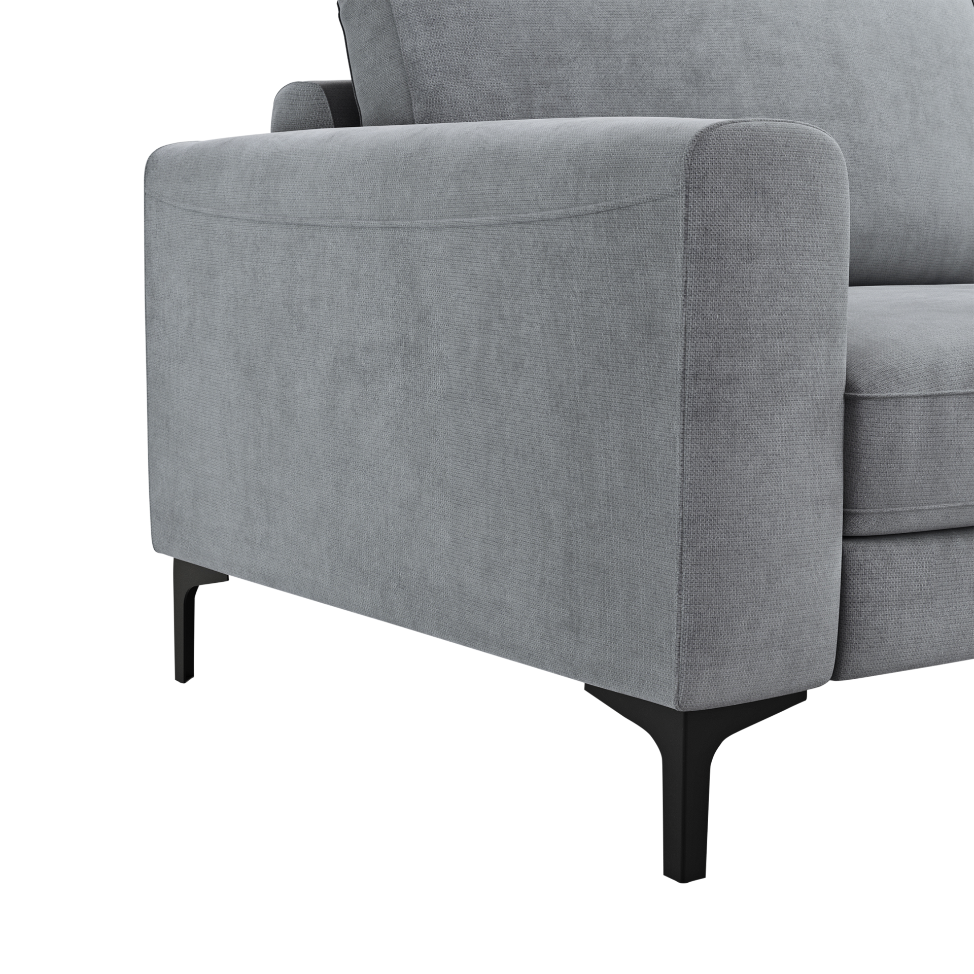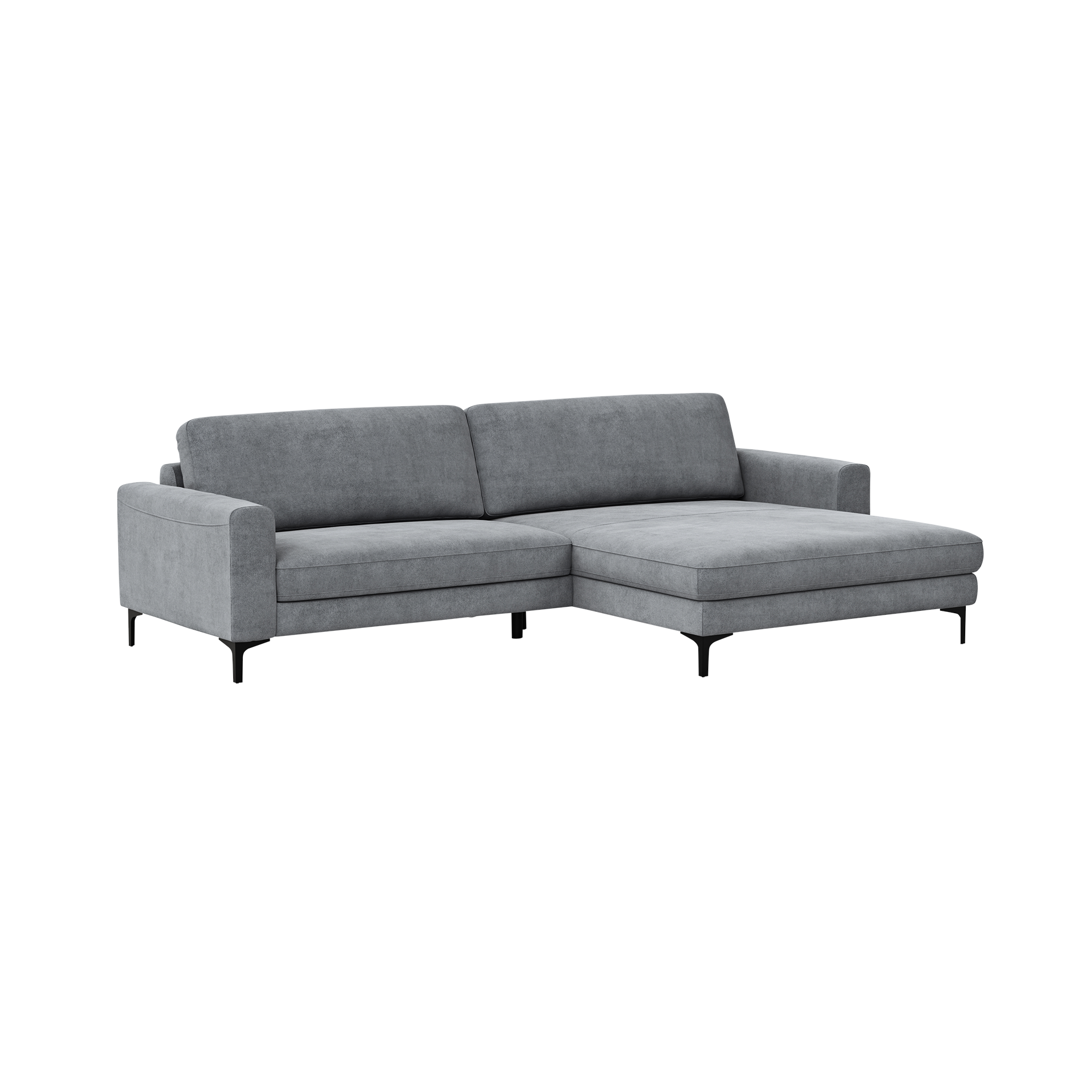 Das Ecksofa Oviedo von Global wohnen in elegantem Grau verbindet stilvolles Design mit hohem Komfort. Mit einer Sitzhöhe von 44 cm und einer Sitztiefe von 59 cm bietet es ausreichend Platz zum Entspannen. Die hochwertige Polsterung aus Kaltschaum und Wellenunterfederung sorgt für langanhaltenden Sitzkomfort. Das Komfortmerkmal "Rücken echt" garantiert eine ansprechende Optik auch von hinten, sodass das Sofa frei im Raum platziert werden kann.