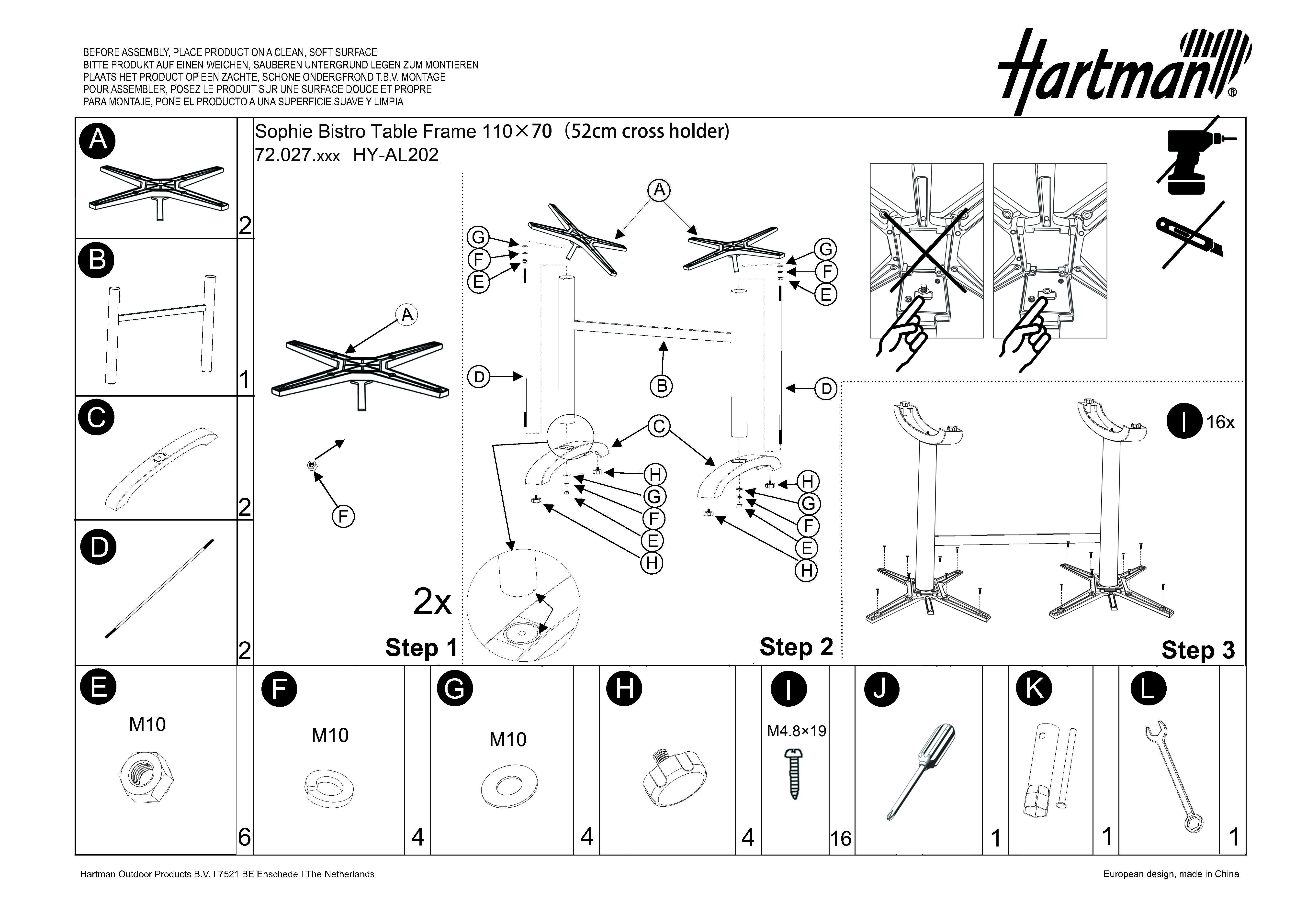 Dieser Tisch ist mehr als nur ein Möbelstück – er ist eine Einladung, die schönen Momente im Freien in vollen Zügen zu genießen. Verleihen Sie Ihrem Garten, Ihrer Terrasse oder Ihrem Balkon mit dem Hartman Folding Bistro Gartentisch eine stilvolle Note.