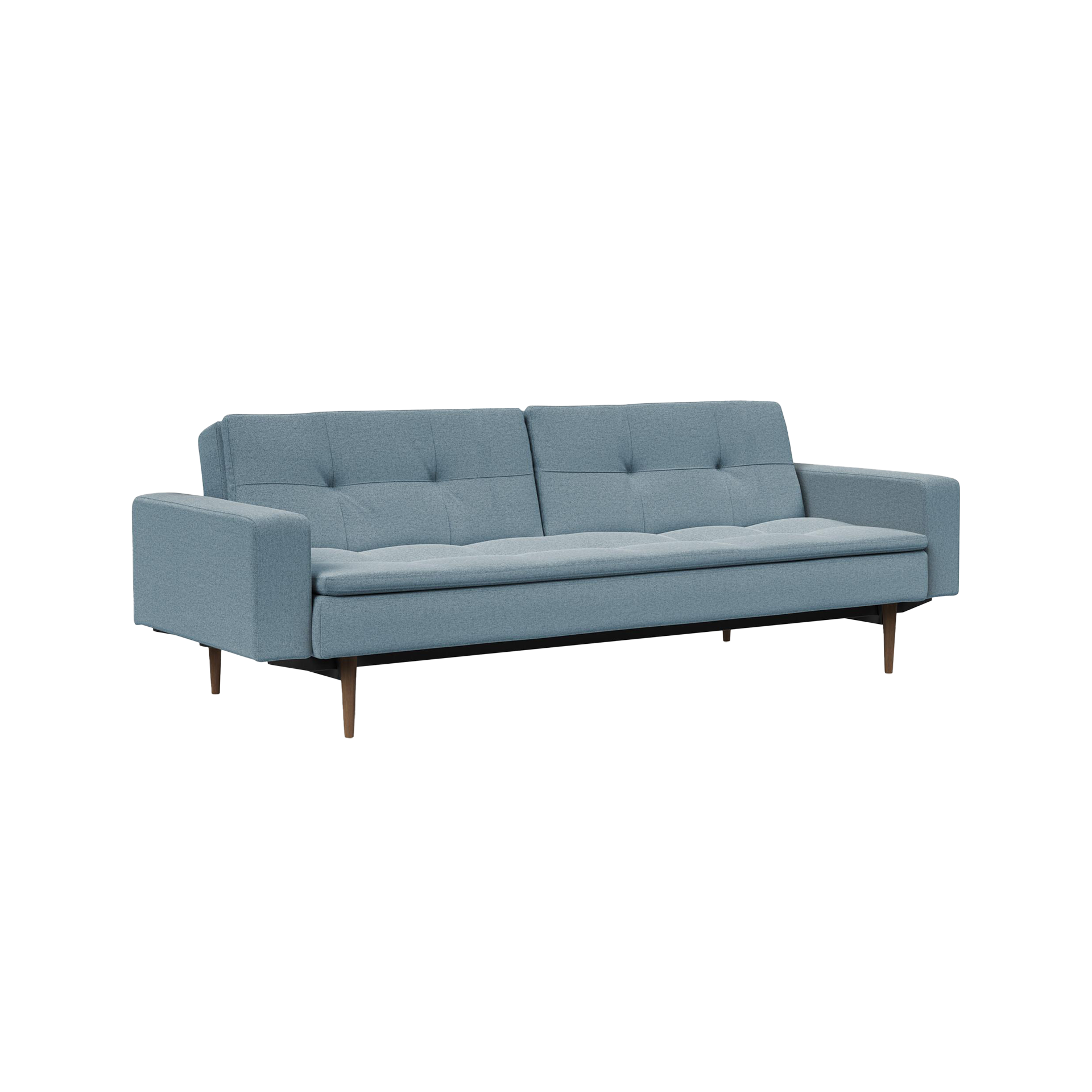 Erleben Sie stilvollen Komfort mit dem Schlafsofa Styletto von INNOVATION LIVING. Mit einer Breite von 53 cm und einer Sitztiefe von 44 cm bietet dieses Möbelstück ideale Proportionen für Ihr Zuhause. Der blaue Polyesterbezug harmoniert perfekt mit dem Gestell in Holzfarben und Schwarz. Die Armlehnenhöhe von 60 cm sorgt für zusätzlichen Komfort.