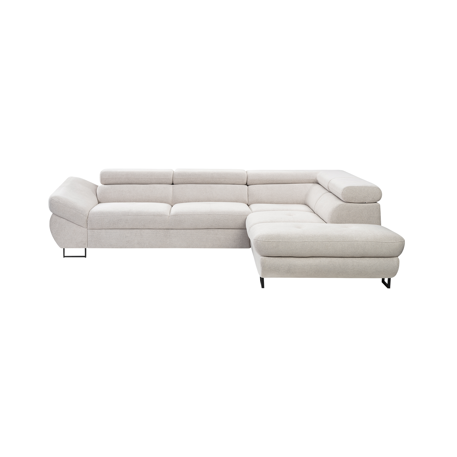 Das Inovationi Fabito Ecksofa in elegantem Grau bietet Ihnen höchsten Komfort und stilvolle Funktionalität für Ihr Zuhause. Die robusten schwarzen Metallfüße mit einer Höhe von 12 cm verleihen dem Sofa Stabilität und eine moderne Optik. Der hochwertige Stoffbezug überzeugt nicht nur durch seine ansprechende Haptik, sondern auch durch seine wasserabweisenden Eigenschaften.