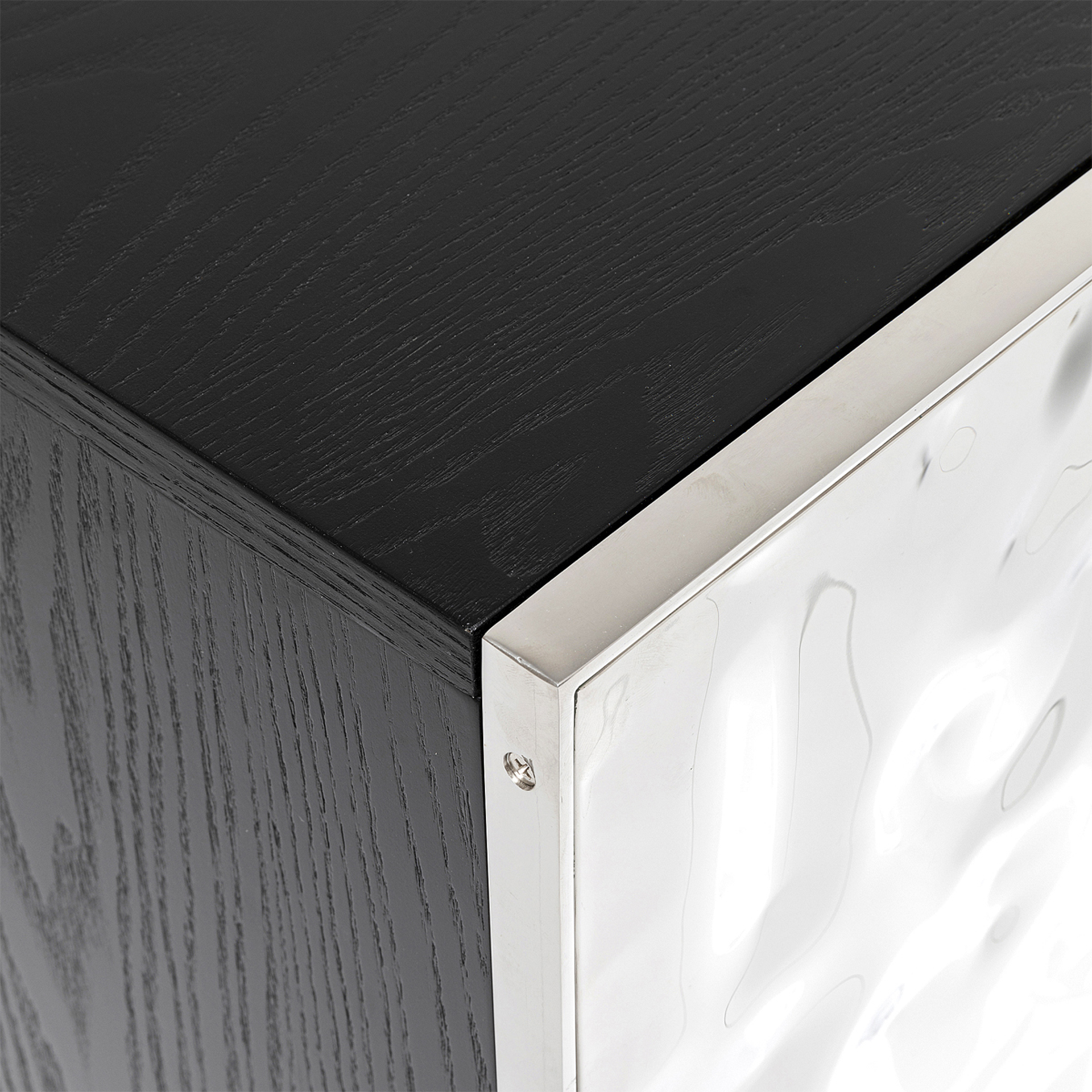 Entdecken Sie das stilvolle Sideboard Caldera von Kare, das Funktionalität und modernes Design perfekt vereint. Dieses Sideboard besticht durch seine einzigartige Kombination aus hochwertigen Materialien und zeitloser Eleganz. Der Korpus aus Esche furniert verleiht dem Möbelstück eine warme, natürliche Ausstrahlung, während die lackierte Edelstahl-Front einen modernen Akzent setzt und für einen Hauch von Raffinesse sorgt.