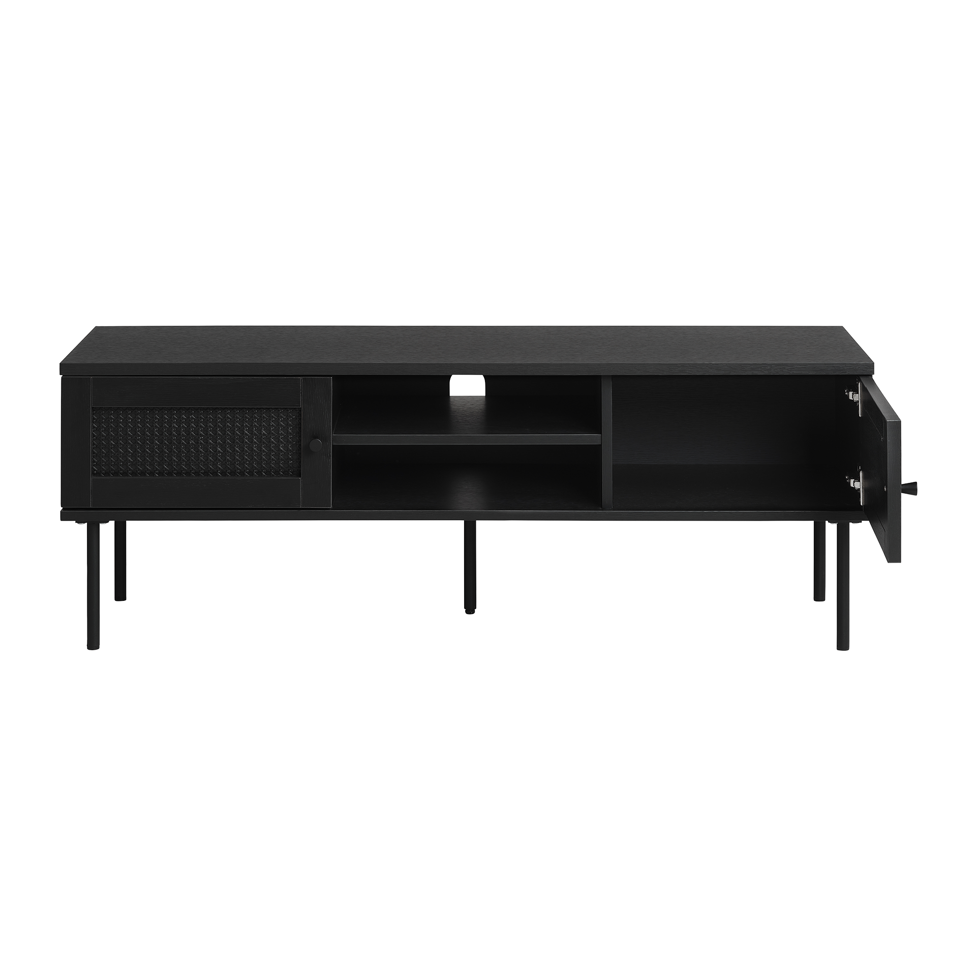 Entdecken Sie das elegante Lowboard Modell Pearlie, das in stilvollem Schwarz gehalten ist und sich perfekt in jedes moderne Wohnambiente einfügt. Die Kombination aus hochwertigem Holz und robustem Metall verleiht diesem Möbelstück nicht nur Stabilität, sondern auch eine zeitlose Ästhetik. Das Eiche Dekor unterstreicht den natürlichen Charme und sorgt für eine warme Atmosphäre in Ihrem Zuhause.