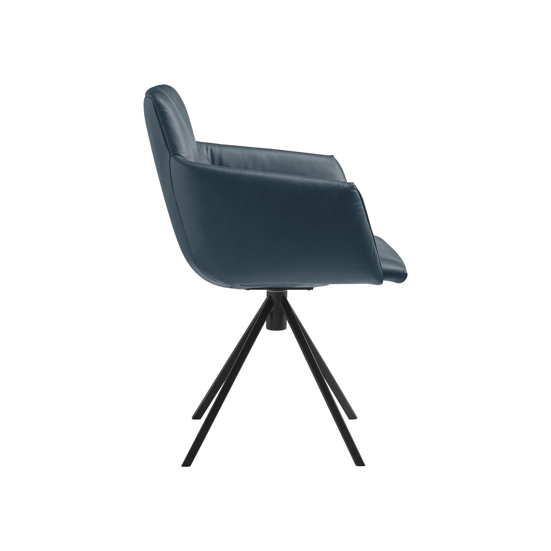 Entdecken Sie den Musterring JustB! Armlehnstuhl, der Komfort und Stil perfekt vereint. Dieser drehbare Armlehnstuhl besticht durch seinen edlen blauen Lederbezug, der nicht nur luxuriös aussieht, sondern auch höchsten Sitzkomfort bietet. Das robuste schwarze Gestell aus Eisen sorgt für Stabilität und Langlebigkeit, sodass der Stuhl ideal für den täglichen Gebrauch geeignet ist.
