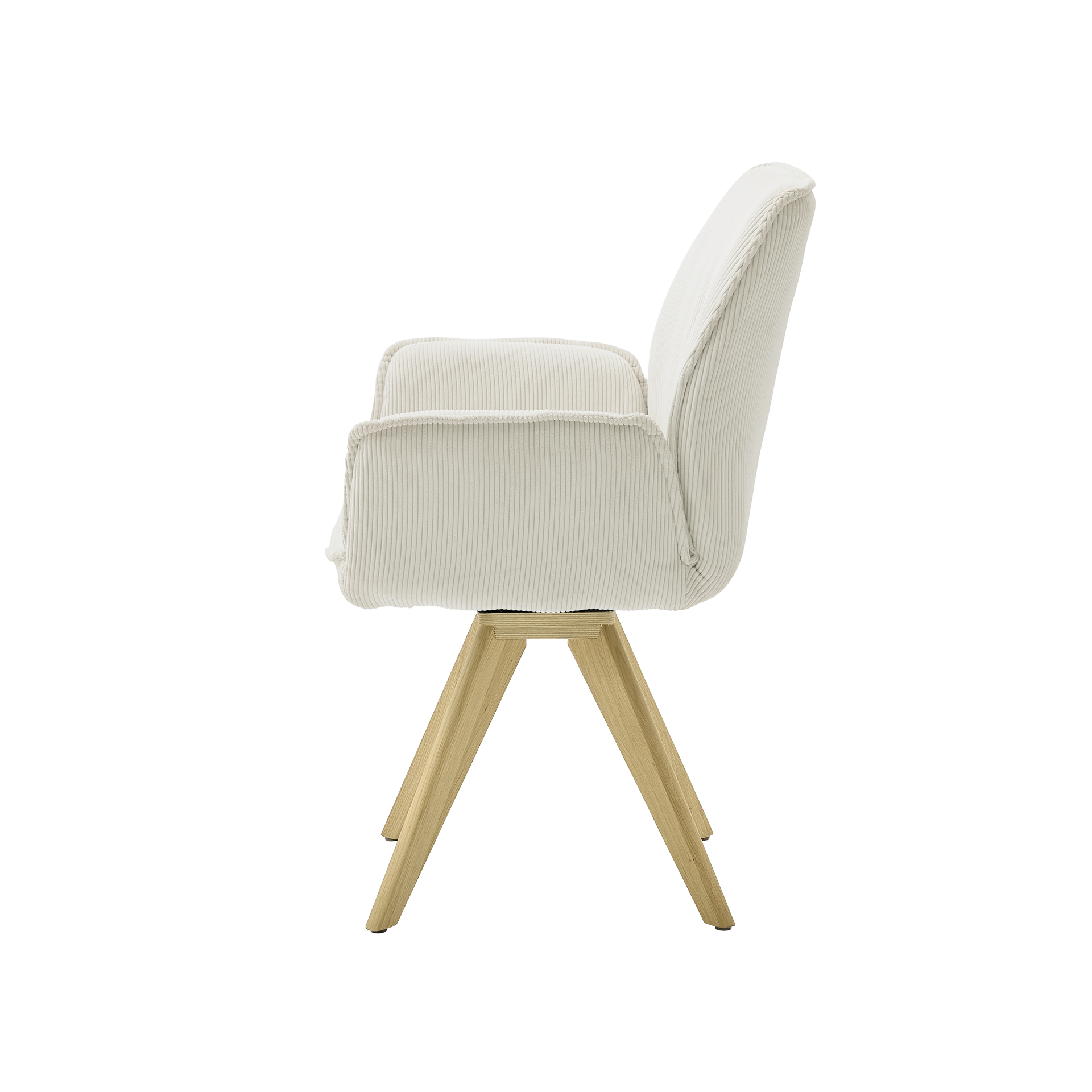 Der Bezug in elegantem Beige harmoniert perfekt mit dem eichefarbenen Gestell, das aus Eiche-Dekor besteht. Diese Kombination verleiht dem Armlehnstuhl einen zeitlosen und zugleich modernen Look, der sich nahtlos in verschiedene Wohnstile einfügt.