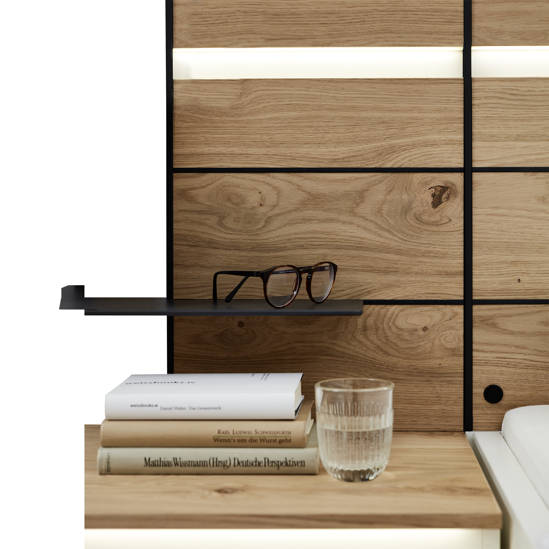 - Balkeneiche furniert, Glasboden Anthrazit