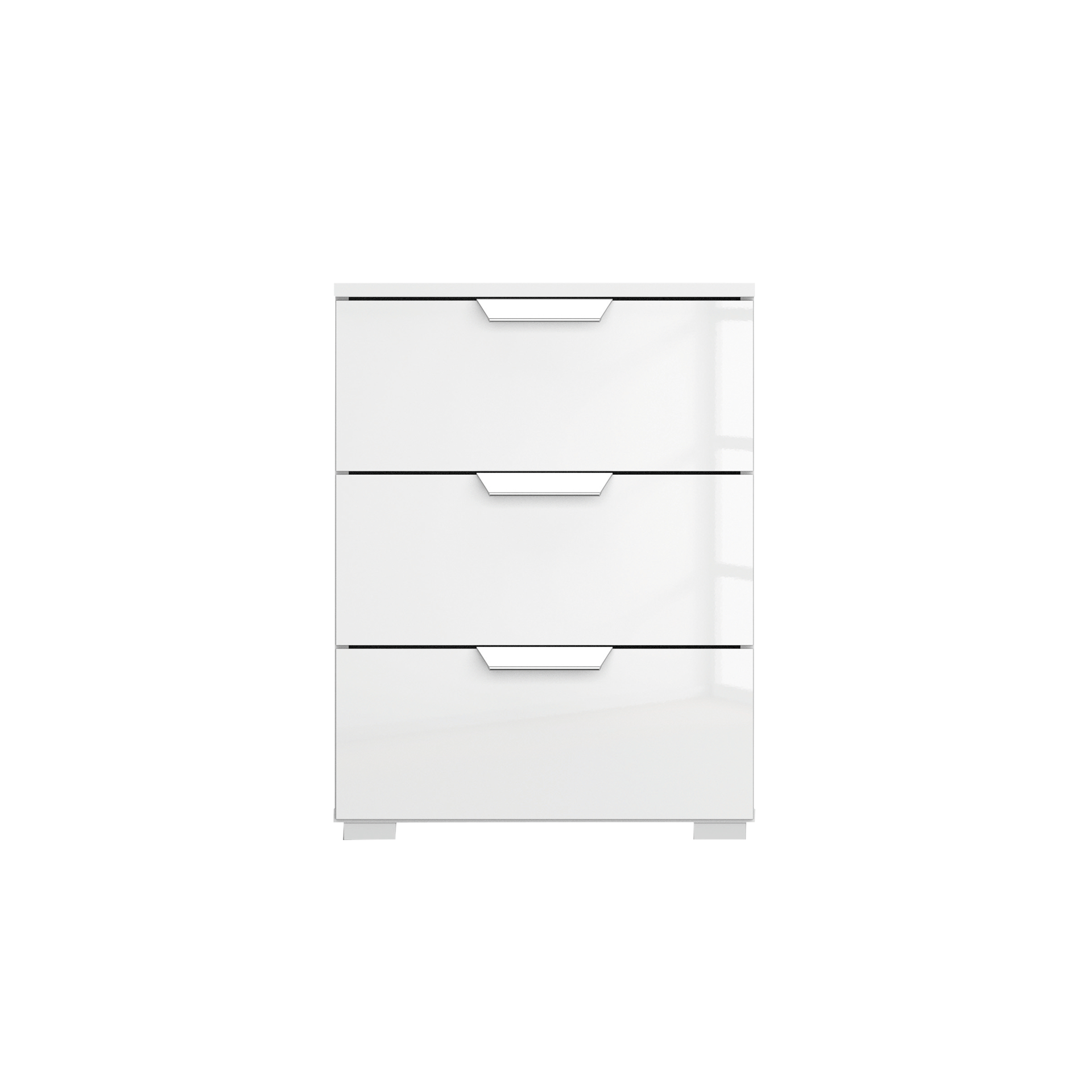 Entdecken Sie den stilvollen Nachttisch Adria B, der Funktionalität und modernes Design in einem vereint. Gefertigt aus hochwertigem Holzwerkstoff, präsentiert sich dieses Möbelstück in einem eleganten Hochglanz Alpinweiß. Die Front in Hochglanz Weiß ergänzt das minimalistische Design perfekt, während die chromfarbenen Griffe einen edlen Akzent setzen.