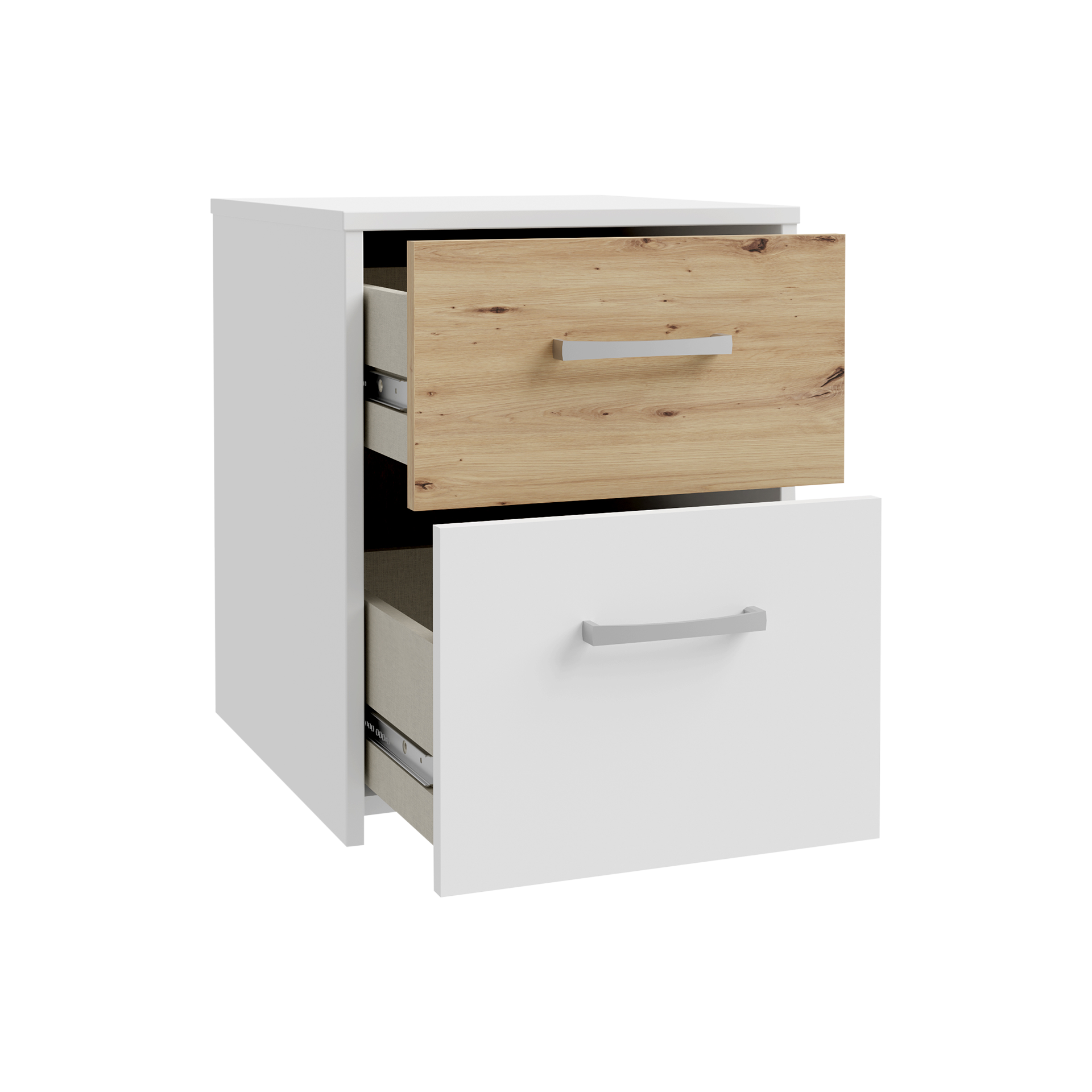Der Schubkasten in Weiß bietet praktischen Stauraum für all Ihre nächtlichen Essentials und sorgt für Ordnung neben dem Bett. Durch seine kompakte Bauweise passt der Nachttisch perfekt in jedes Schlafzimmer, egal ob groß oder klein.