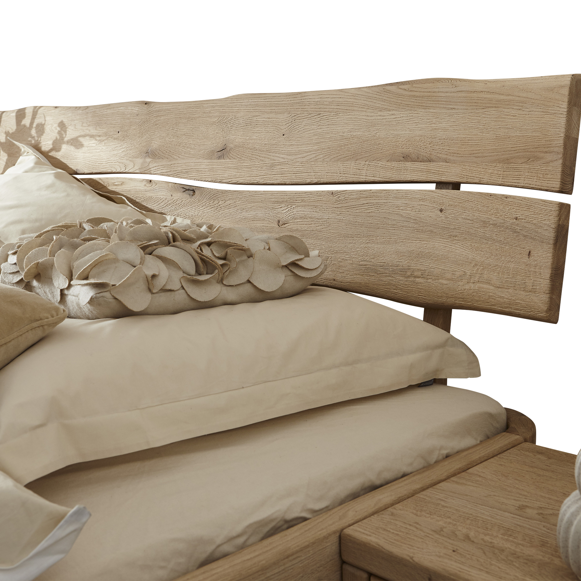 Mit einer Fußhöhe von 18,5 cm bietet das Bett eine optimale Höhe für einen komfortablen Ein- und Ausstieg. Ein besonderes Komfortmerkmal ist die naturbelassene Oberflächenbeschaffenheit, die das Bett zu einem echten Naturprodukt macht. Die natürliche Struktur des Holzes bleibt erhalten und sorgt für ein gesundes Raumklima.