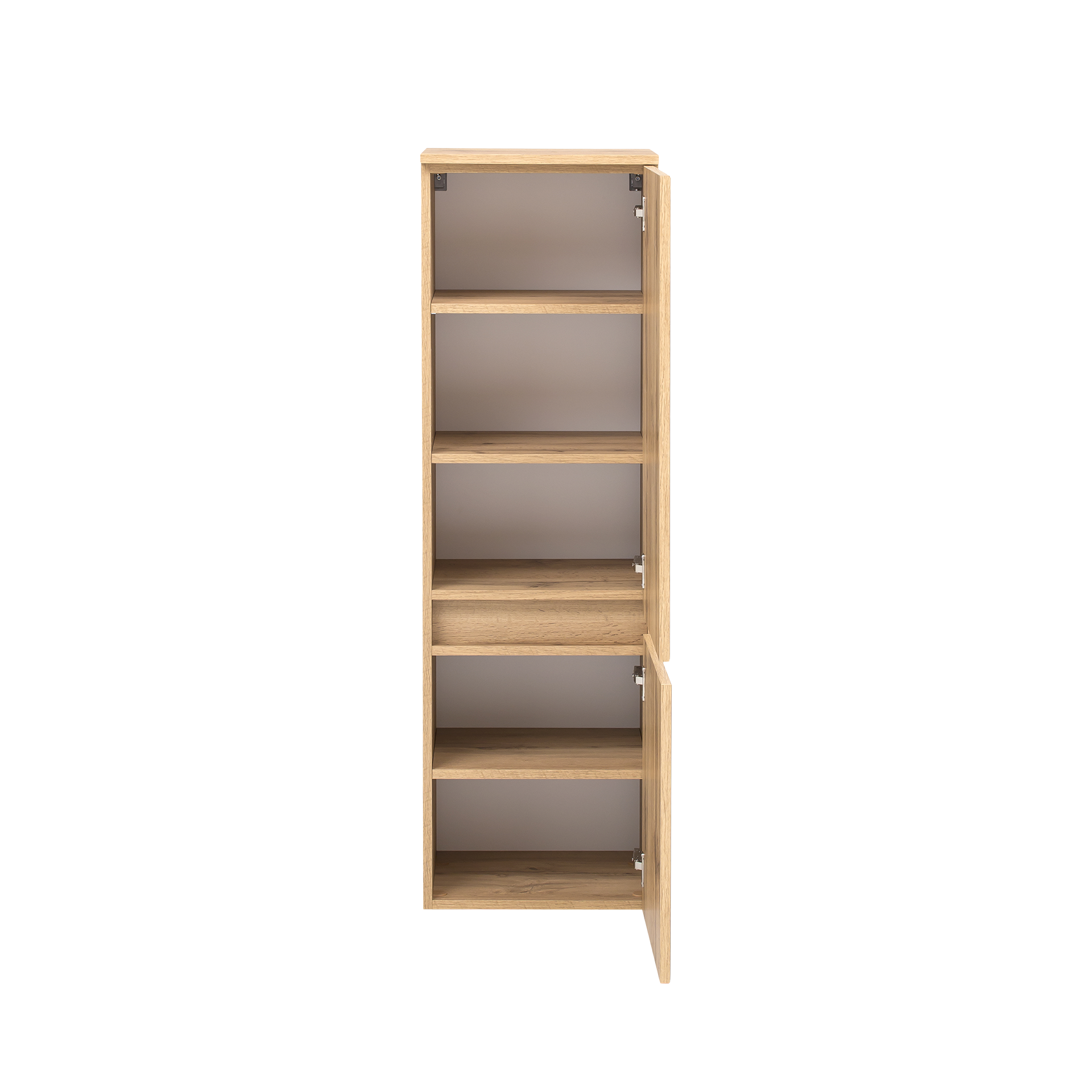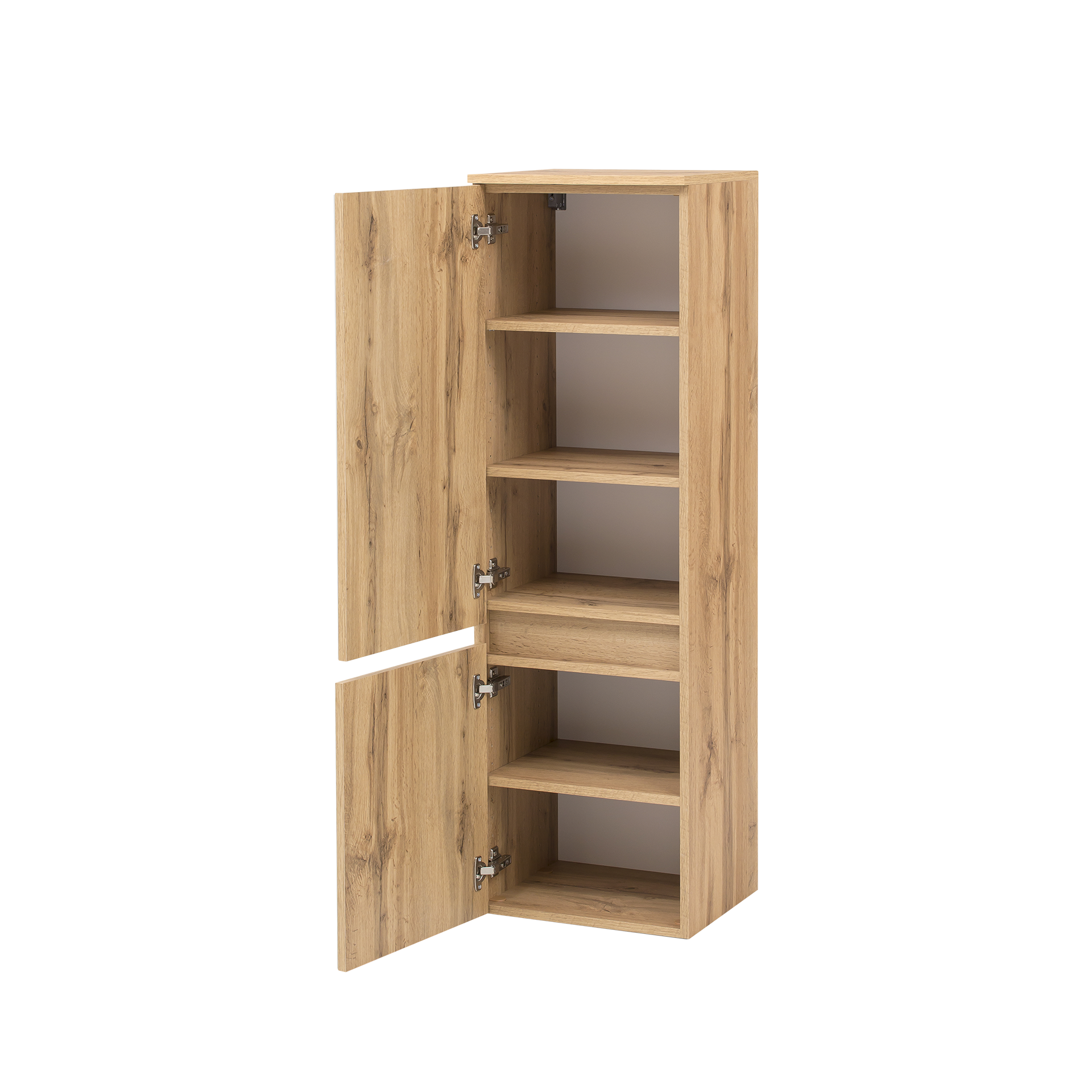 Der Badschrank Hero vereint hochwertige Materialien mit einem durchdachten Design, das sich harmonisch in verschiedene Einrichtungsstile integriert. Die Kombination aus der strahlend weißen Front und dem eichefarbenen Korpus schafft einen ansprechenden Kontrast, der Ihrem Badezimmer einen Hauch von Luxus verleiht. Investieren Sie in Qualität und Design mit dem Badschrank Hero und verwandeln Sie Ihr Badezimmer in eine stilvolle Wohlfühloase.
