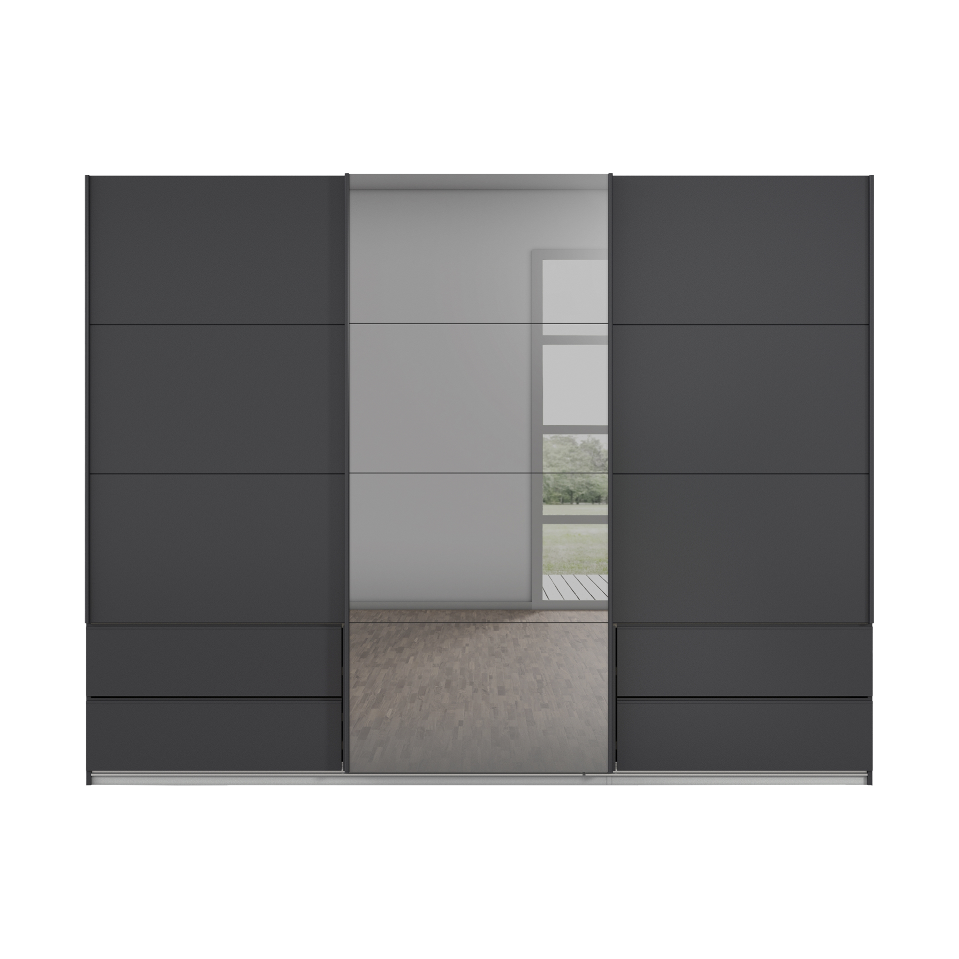 Erleben Sie modernen Stil und herausragende Funktionalität mit dem Schwebetürenschrank Emotion von Paul Phillip. Die elegante Kombination aus Grauspiegel-Türen und einem grau matt lackierten Korpus verleiht jedem Raum eine zeitlose Ästhetik. Gefertigt aus hochwertigem Glas und robustem Holzwerkstoff, bietet dieser Schrank nicht nur optische, sondern auch praktische Vorteile.