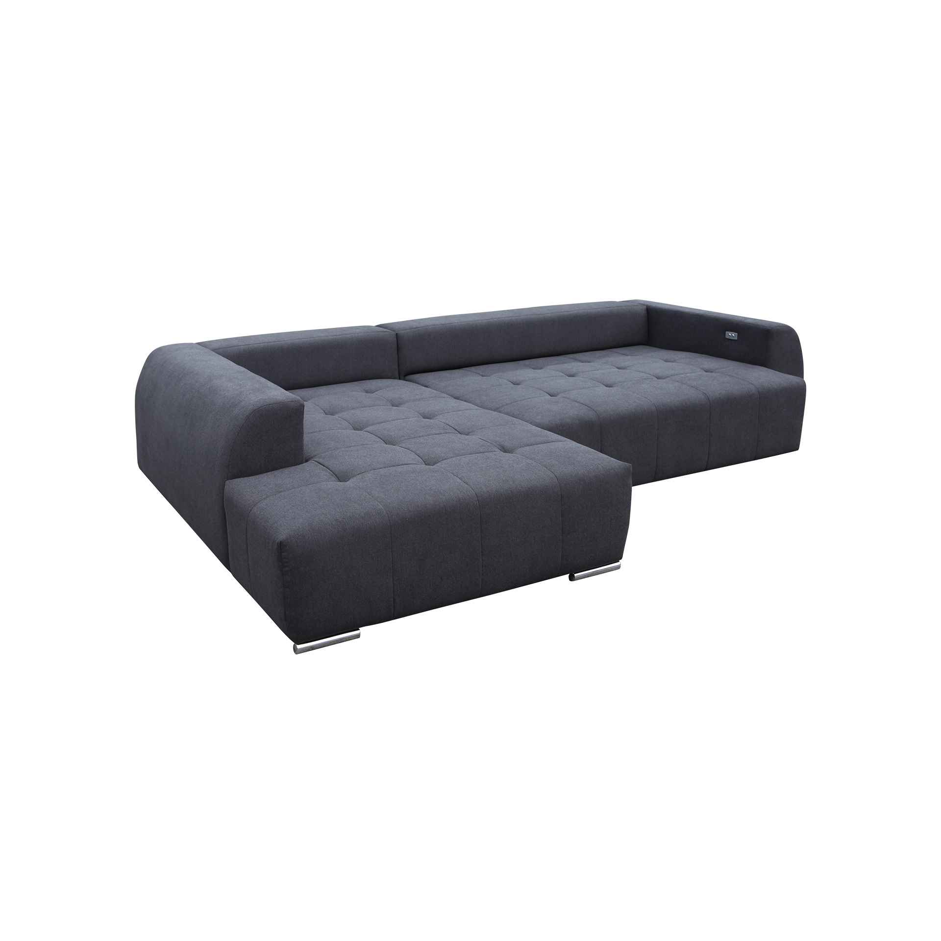 Das preisgünstige Ecksofa Leonie ist die perfekte Wahl für stilbewusste Käufer, die Komfort und Eleganz in ihrem Wohnzimmer vereinen möchten. Dieses Ecksofa besteht aus einer Ottomane mit Armlehne links und einem 3-Sitzer mit Armlehne rechts, was eine flexible und gemütliche Sitzgelegenheit bietet. Der Bezug aus hochwertigem Stoff in Dunkelgrau, bestehend aus 95% Polyester und 5% Nylon, verleiht dem Sofa eine moderne und zugleich zeitlose Optik. Die verchromten Metallfüße sorgen für Stabilität und einen Hauch von Eleganz.