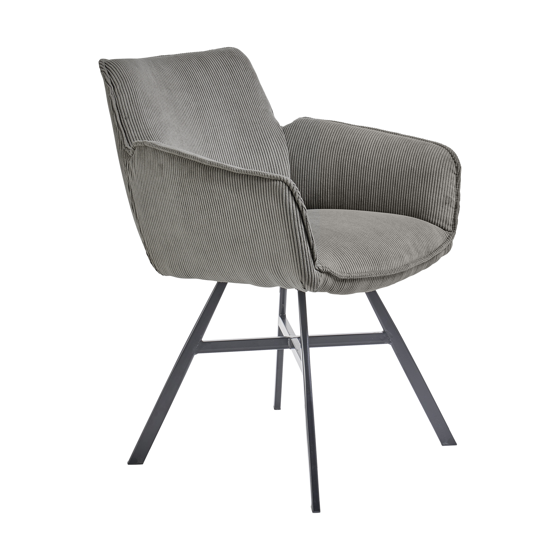 Entdecken Sie den stilvollen Armlehnstuhl Frisco von set one by Musterring. In den Farben Grau und Schwarz erhältlich, verbindet dieses Modell modernes Design mit hoher Funktionalität. Der Stuhl besteht aus hochwertigen Materialien wie Eisen, Kunststoff und Polyester, die für Langlebigkeit und Stabilität sorgen. Der Bezug aus Cord verleiht dem Stuhl eine angenehme Haptik und einen zeitgemäßen Look.