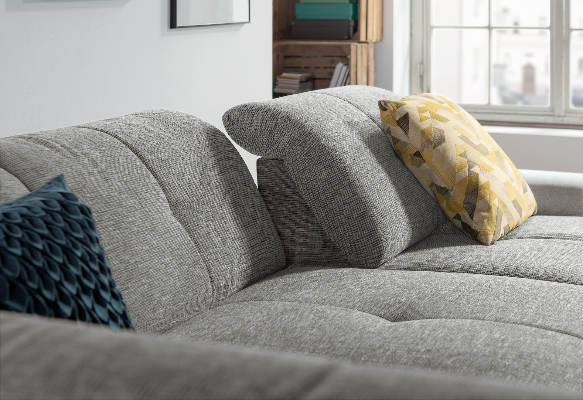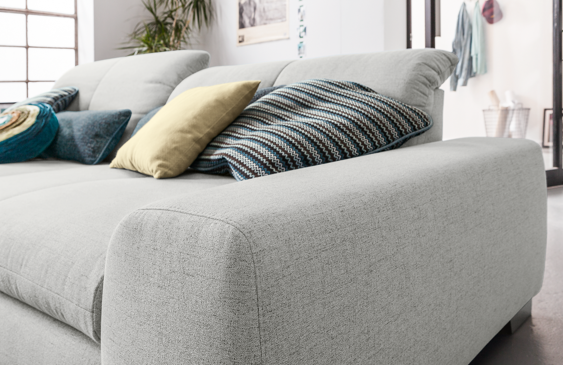 Die Füße aus Chrom und Metall verleihen dem Sofa eine moderne Note und sind 6,5 cm hoch. Dank der praktischen Rückenlehnenverstellung und Sitztiefenverstellung können Sie die Sitzposition individuell anpassen. Die Armlehnen haben eine Höhe von 48 cm, was zusätzlichen Komfort bietet. Das Gestell aus Holz und Holzwerkstoff garantiert Stabilität und Langlebigkeit. Zudem profitieren Sie von einer 5-Jahres-Herstellergarantie. Rücken echt bedeutet, dass auch die Rückseite des Sofas mit dem gleichen hochwertigen Stoff bezogen ist.