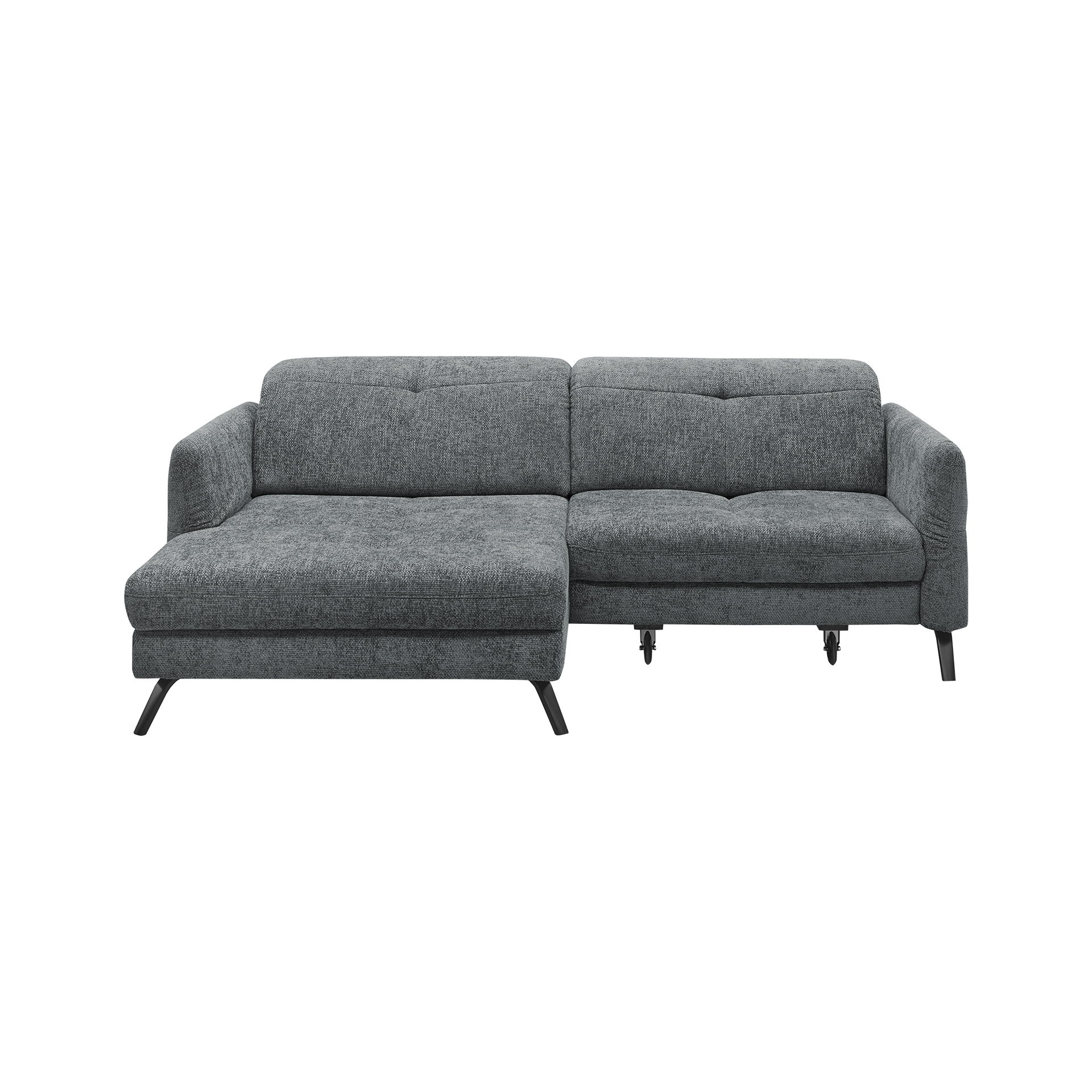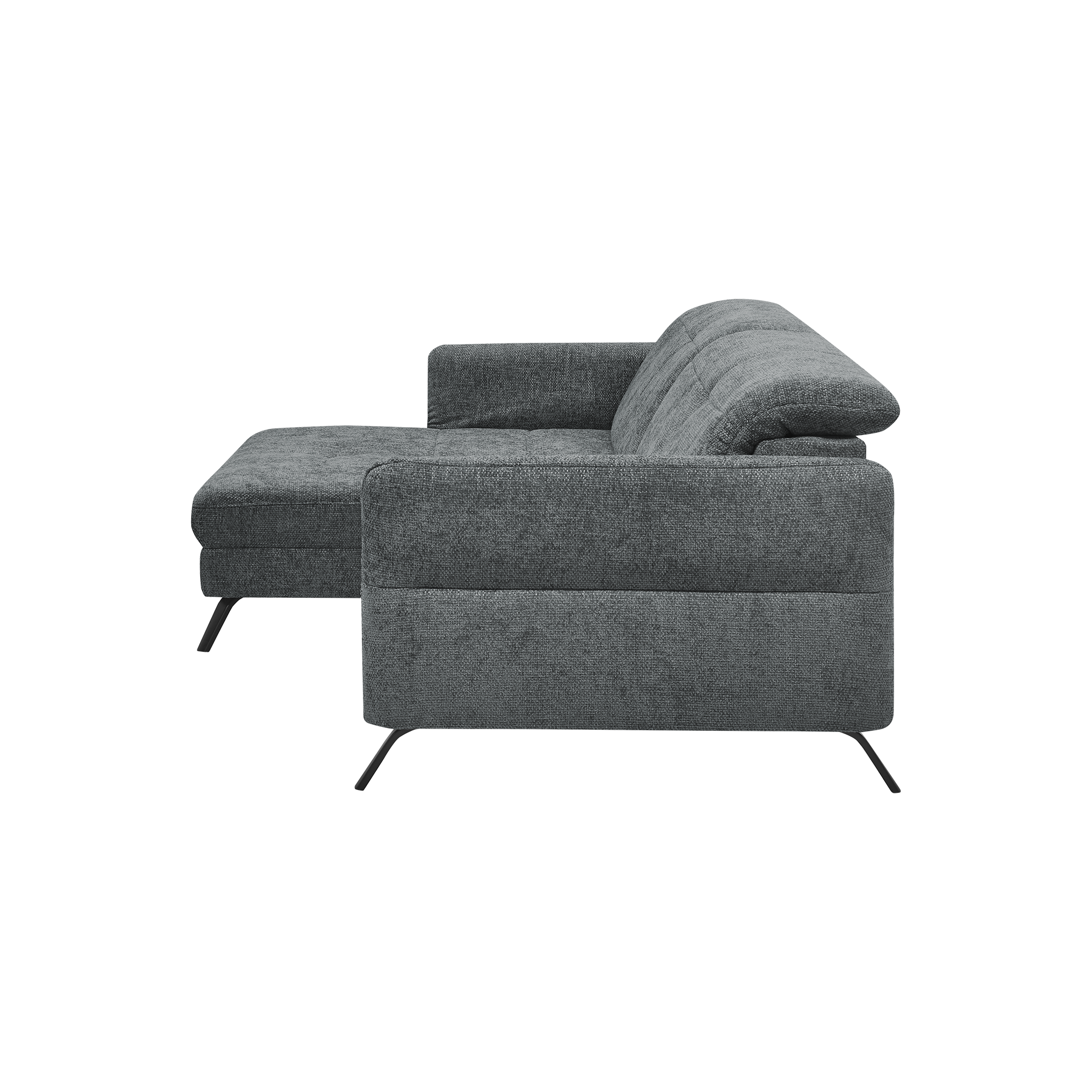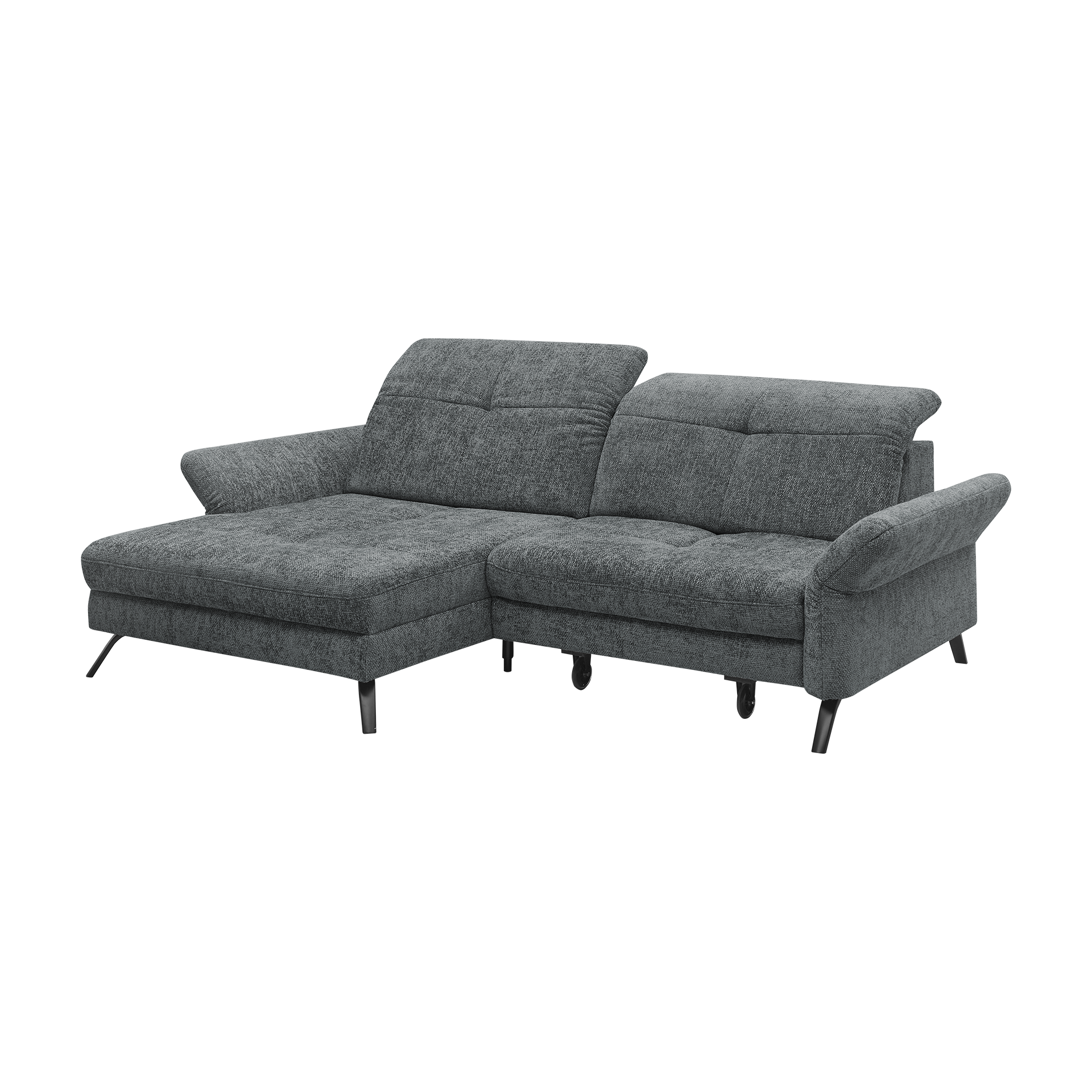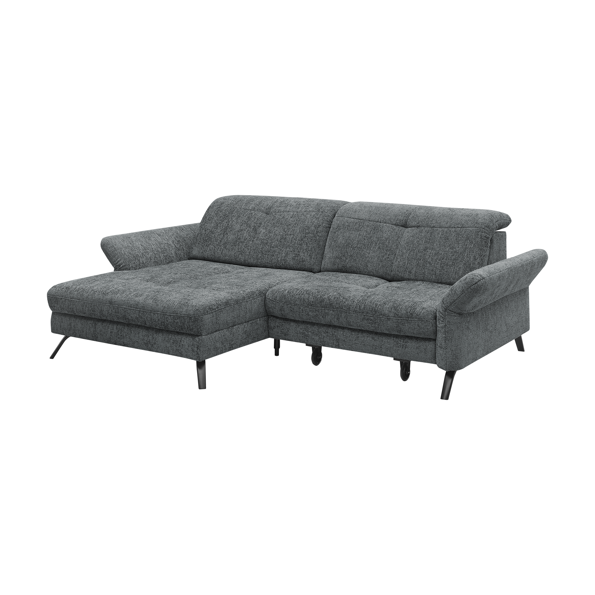 Das Ecksofa "Sophie" von set one by Musterring vereint modernes Design mit hoher Funktionalität. Der Bezug in elegantem Anthrazit aus hochwertigem Polyester sorgt für eine stilvolle Optik, während die schwarzen Metallfüße dem Sofa eine stabile Basis verleihen. Mit einer Sitzhöhe von 45 cm und der Polsterung aus Kaltschaum bietet das Sofa hervorragenden Sitzkomfort.