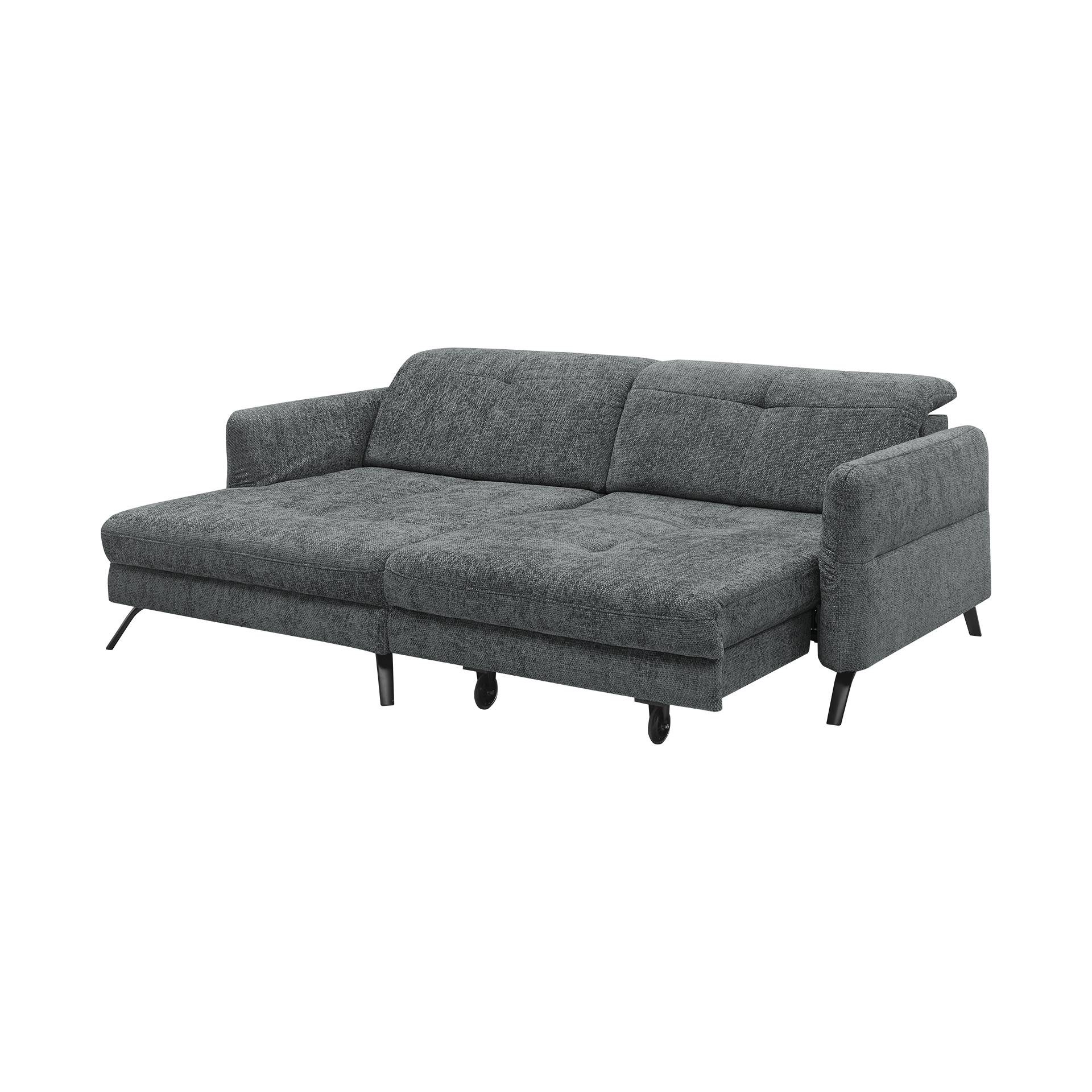 Ein besonderes Highlight ist die integrierte Schlaffunktion, die das Sofa im Handumdrehen in eine gemütliche Schlafgelegenheit verwandelt. Die verstellbaren Armlehnen und Kopfteile bieten zusätzlichen Komfort und passen sich Ihren individuellen Bedürfnissen an.