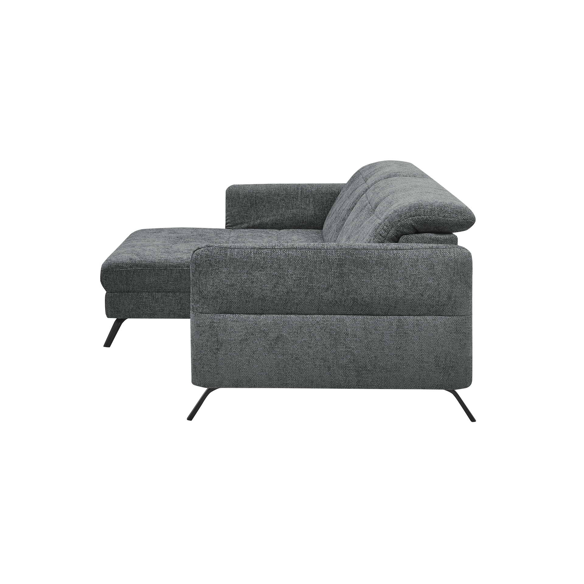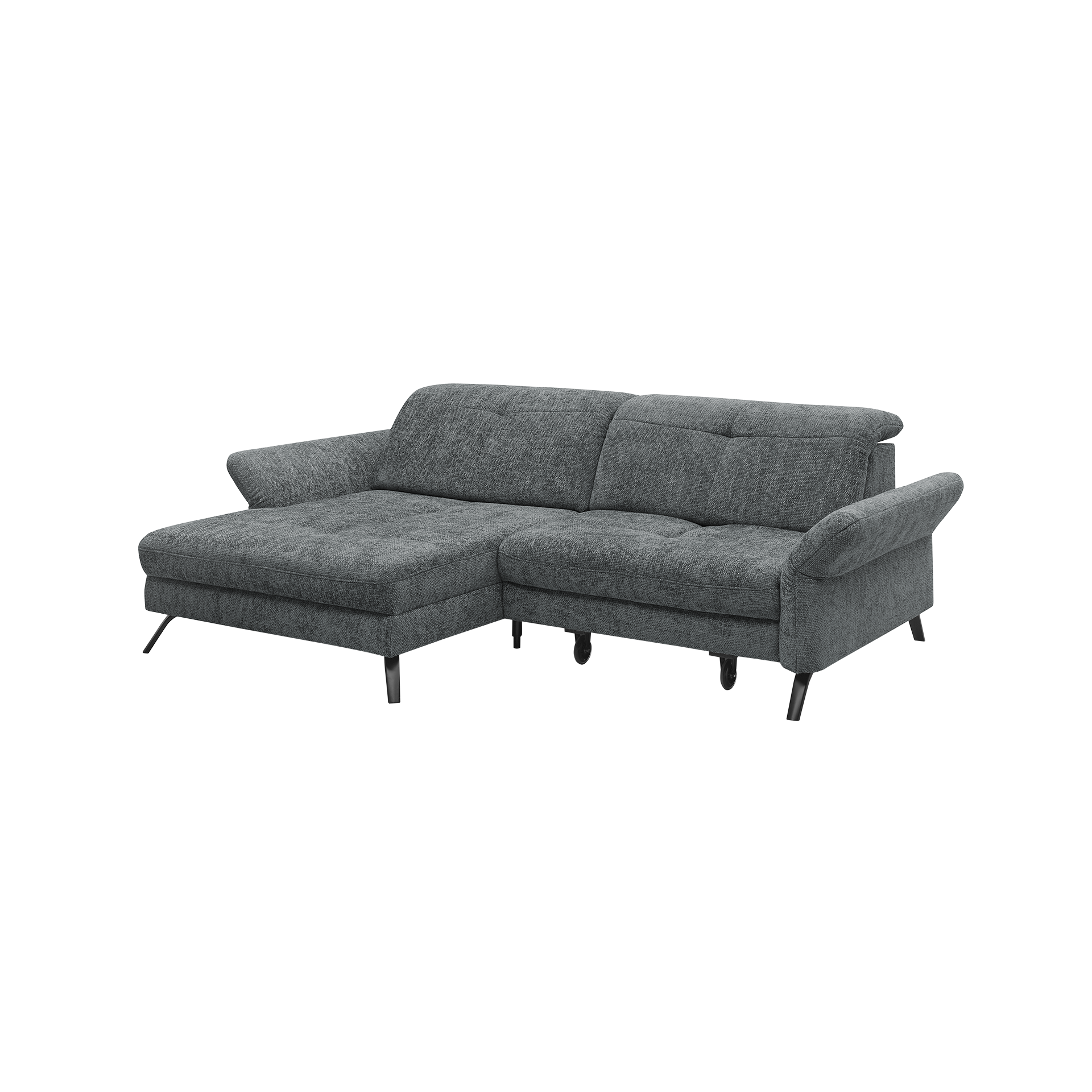 Entdecken Sie das Ecksofa "Sophie" von set one by Musterring, das stilvolle Eleganz mit funktionalem Design kombiniert. Der anthrazitfarbene Stoffbezug aus hochwertigem Polyester verleiht Ihrem Wohnraum eine moderne Note, während die schwarzen Metallfüße für Stabilität und einen zeitgenössischen Look sorgen.