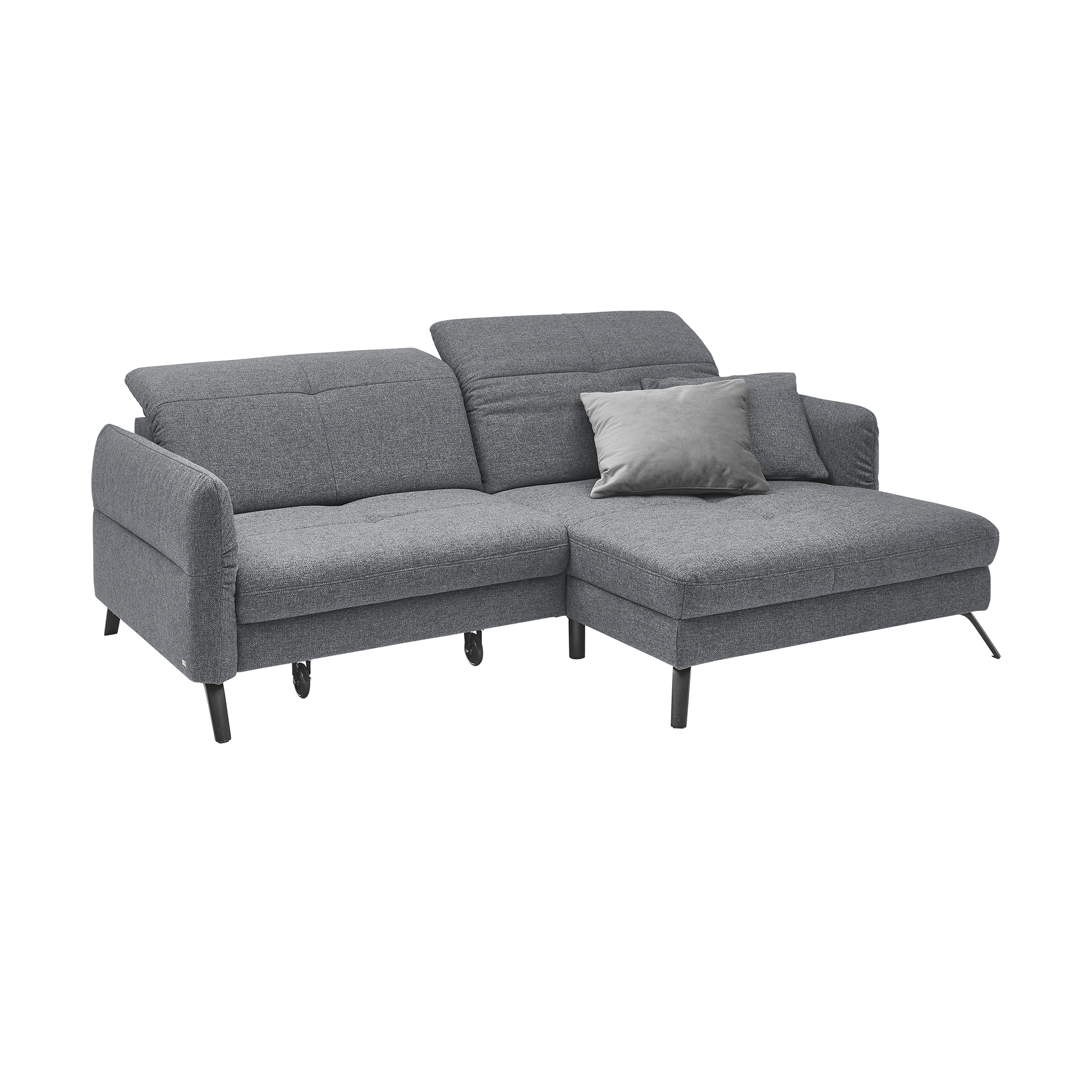 Entdecken Sie das Ecksofa Sophie von set one by Musterring, das stilvolles Design mit vielseitiger Funktionalität vereint. Der Bezug in elegantem Anthrazit besteht aus hochwertigem Polyester-Stoff und harmoniert perfekt mit den robusten schwarzen Metallfüßen. Dank der integrierten Schlaffunktion verwandelt sich das Sofa mühelos in eine komfortable Schlafgelegenheit für Gäste.