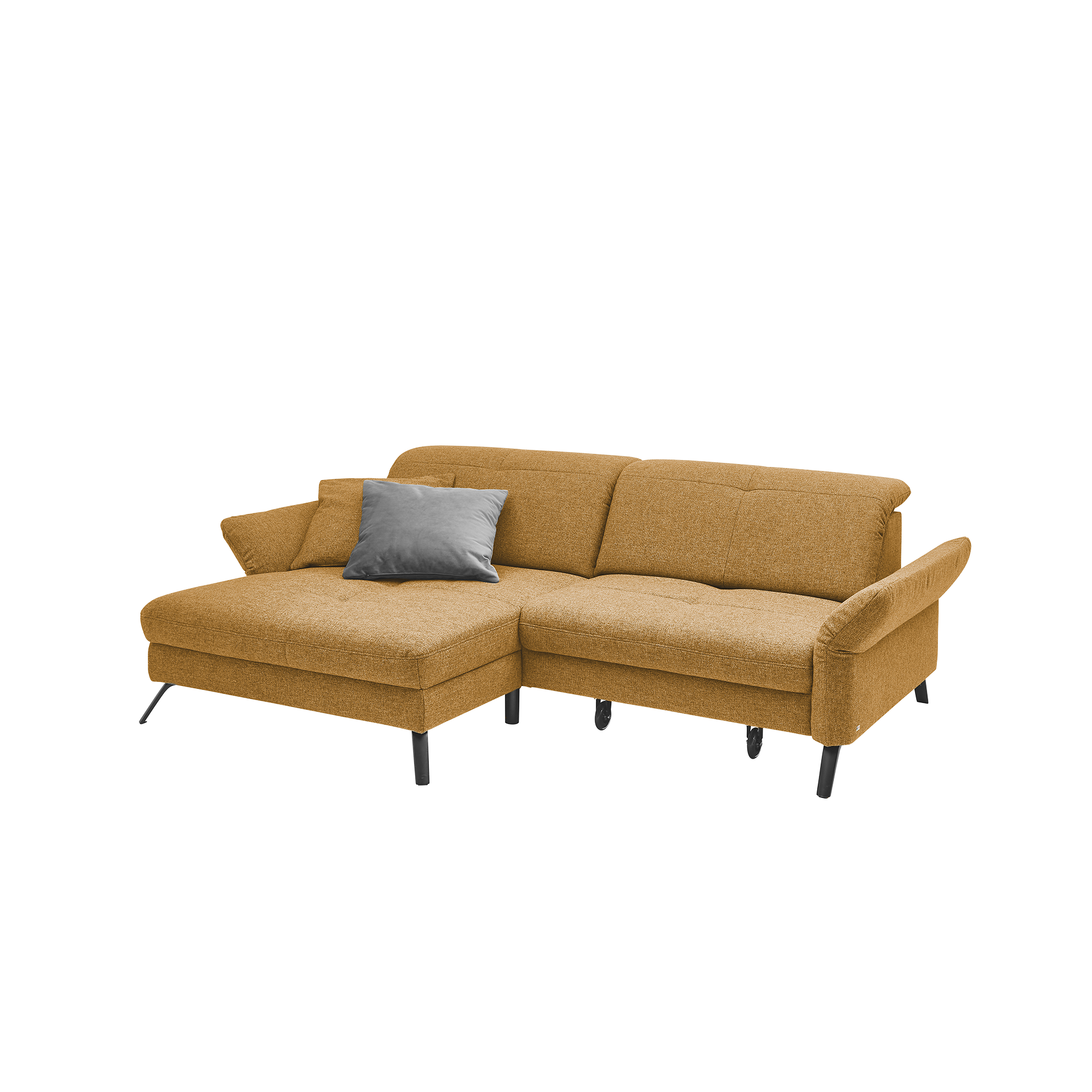 Entdecken Sie das Ecksofa Sophie von set one by Musterring – die perfekte Kombination aus Stil und Funktionalität. Mit seinem leuchtend gelben Stoffbezug aus hochwertigem Polyester setzt dieses Sofa einen modernen Akzent in Ihrem Wohnzimmer. Die schlichten schwarzen Metallfüße verleihen dem Design einen eleganten Touch.